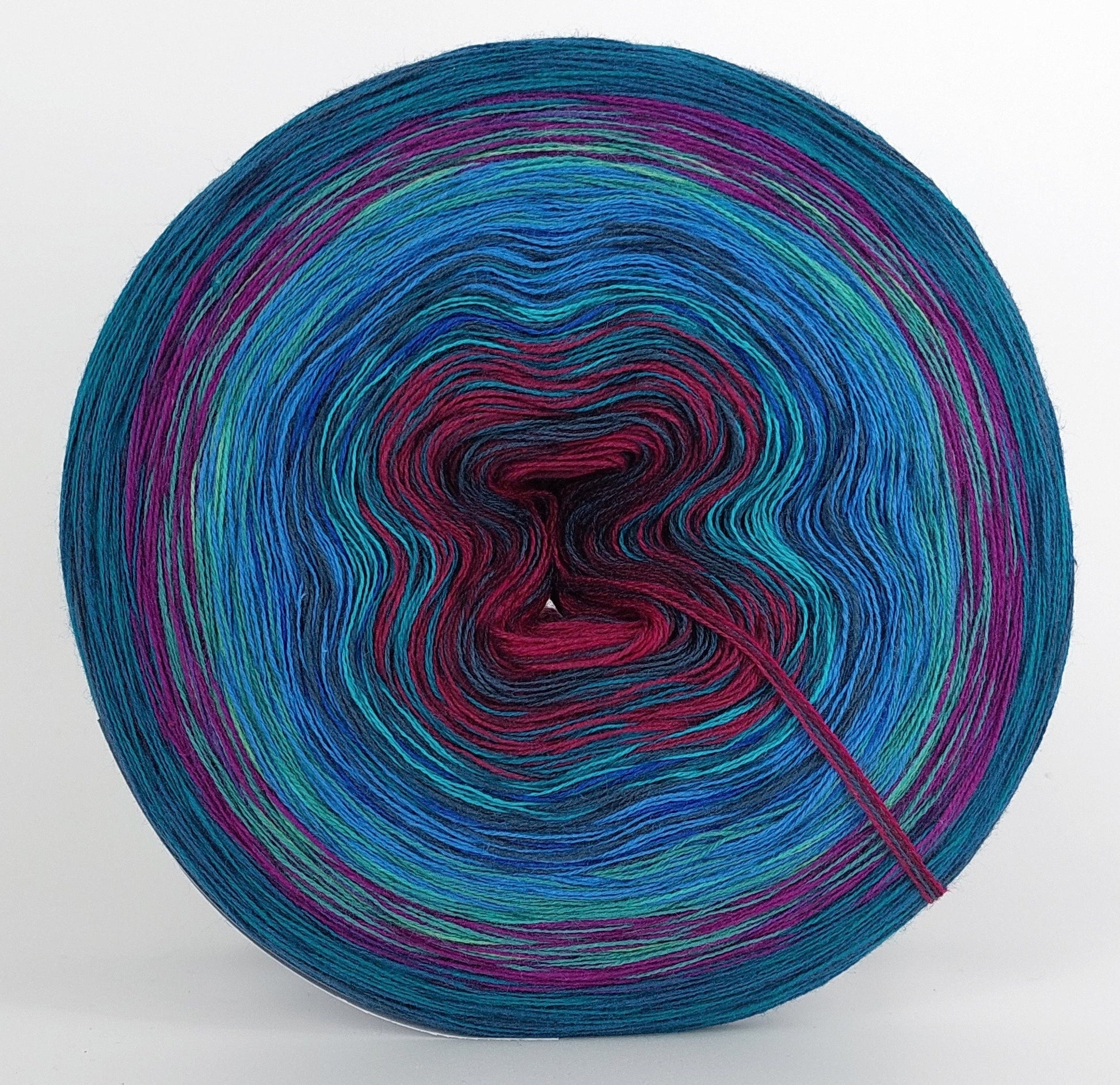 Bei der Tuchwicklung müsst ihr bei mir von innen beginnen. Hier wird jeder Farbabschnitt immer Länger, sodass die "Balken" im Tuch ungefähr gleich dick bleiben. Bei einer Normalen Wicklung sind alle Farbabschnitte gleichlang.