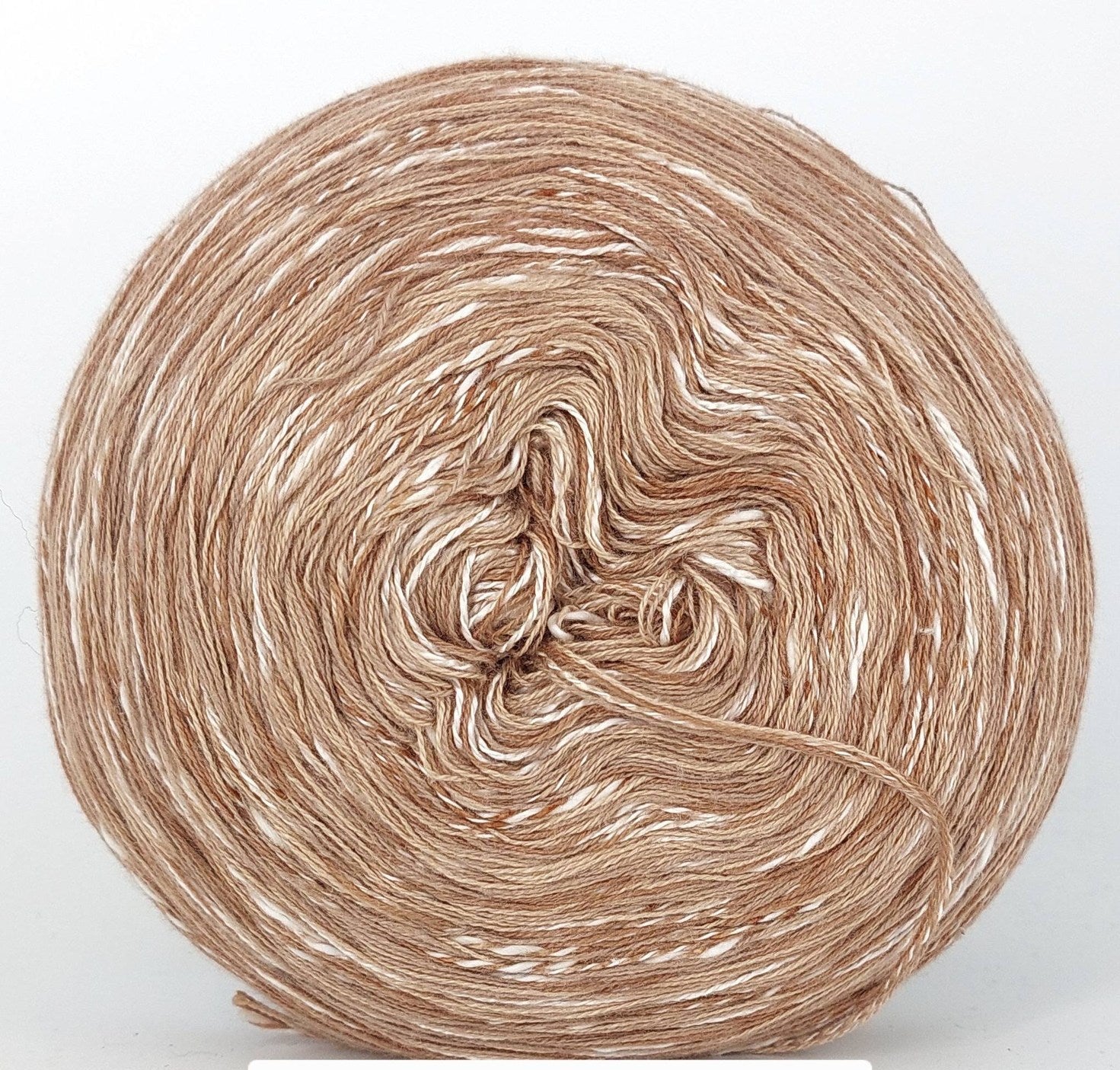 Der Bobbel ist bei den Farbübergängen mit kleinen Knoten (Frankfurter Knoten) verbunden, die super sicher sind und kaum spürbar. Es wechselt immer nur 1 Faden von den 4 gefachten Fäden. Das Garn ist gefacht und nicht verzwirnt .