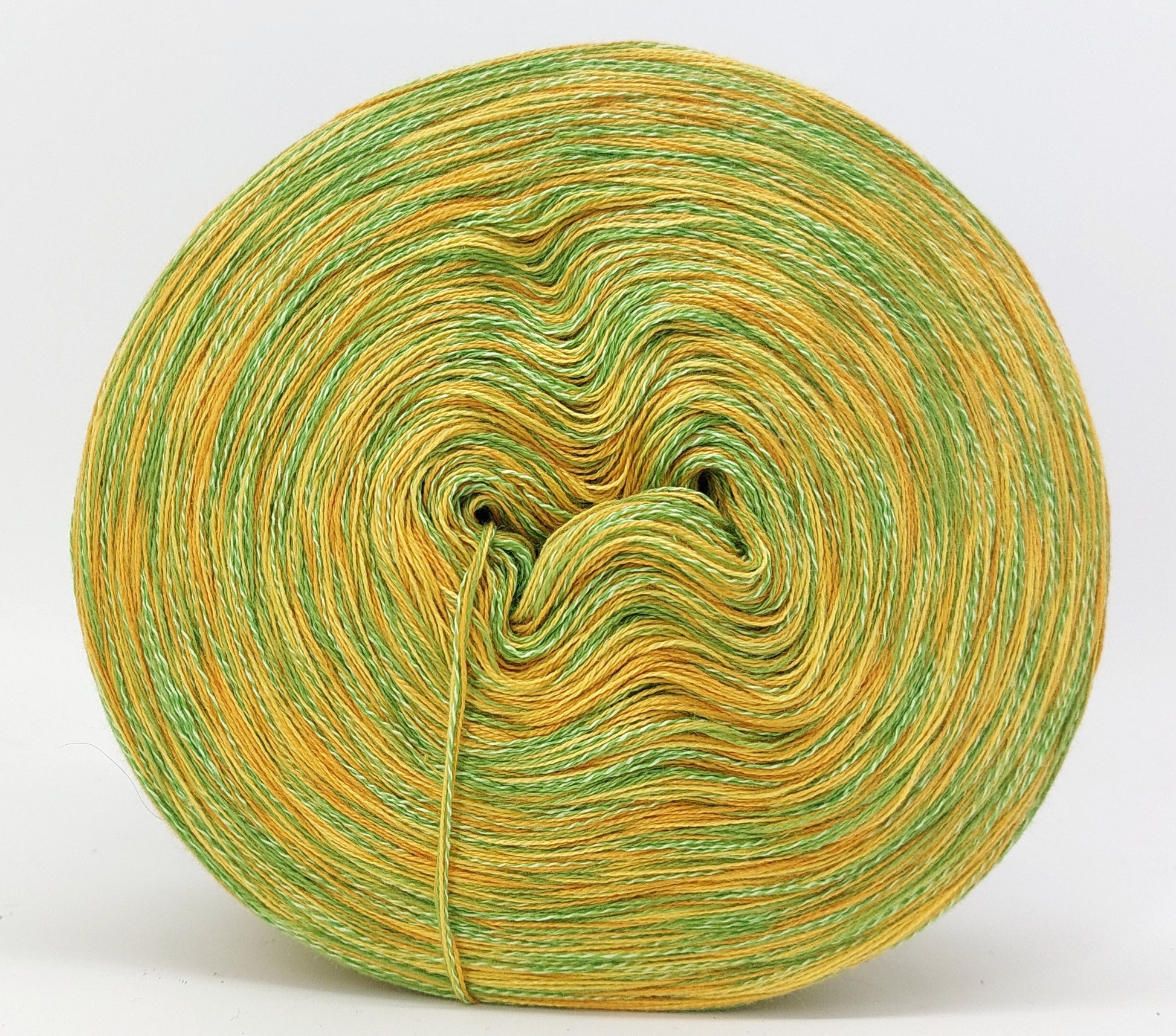 Bei der Tuchwicklung müsst ihr bei mir von innen beginnen. Hier wird jeder Farbabschnitt immer Länger, sodass die "Balken" im Tuch ungefähr gleich dick bleiben. Bei einer Normalen Wicklung sind alle Farbabschnitte gleichlang.