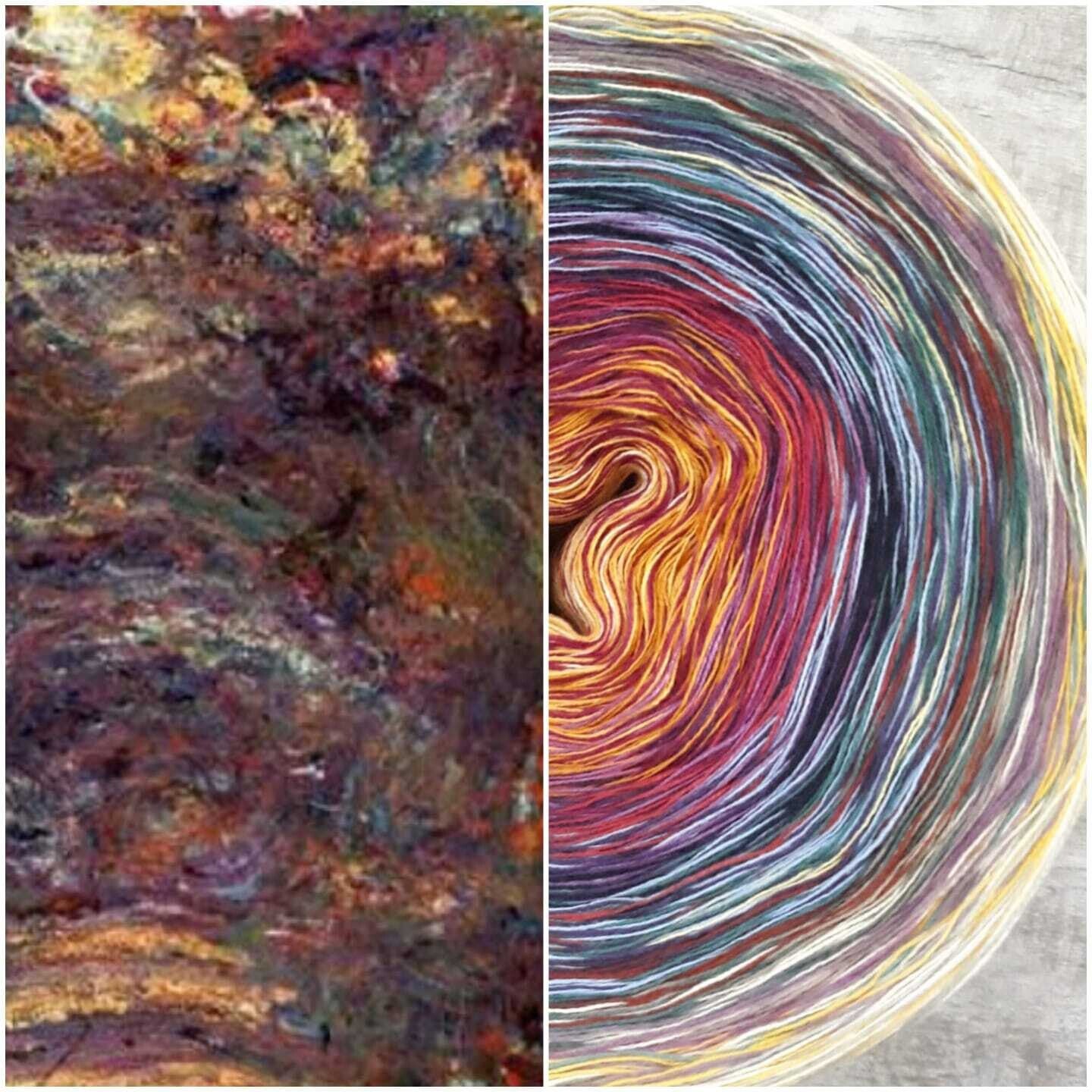 Bei der Tuchwicklung müsst ihr bei mir von innen beginnen. Hier wird jeder Farbabschnitt immer Länger, sodass die "Balken" im Tuch ungefähr gleich dick bleiben. Bei einer Normalen Wicklung sind alle Farbabschnitte gleichlang.