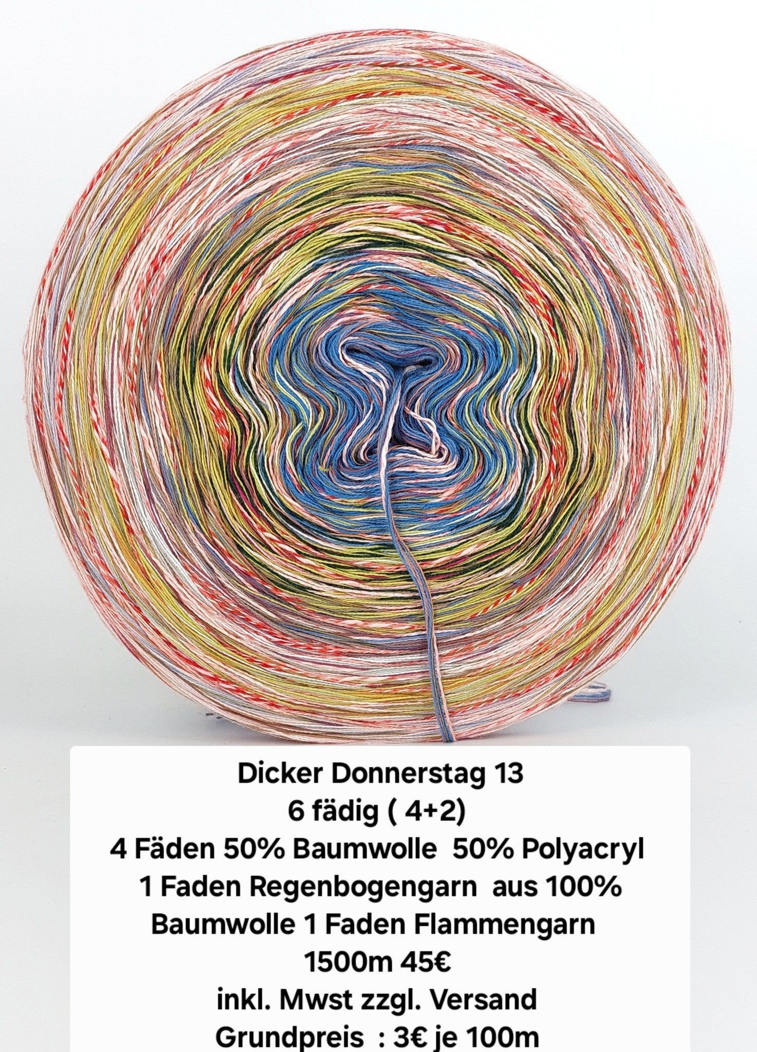 4 Fäden bestehen aus 50% Baumwolle 50% Polyacryl , 1 Faden aus 100% Baumwolle