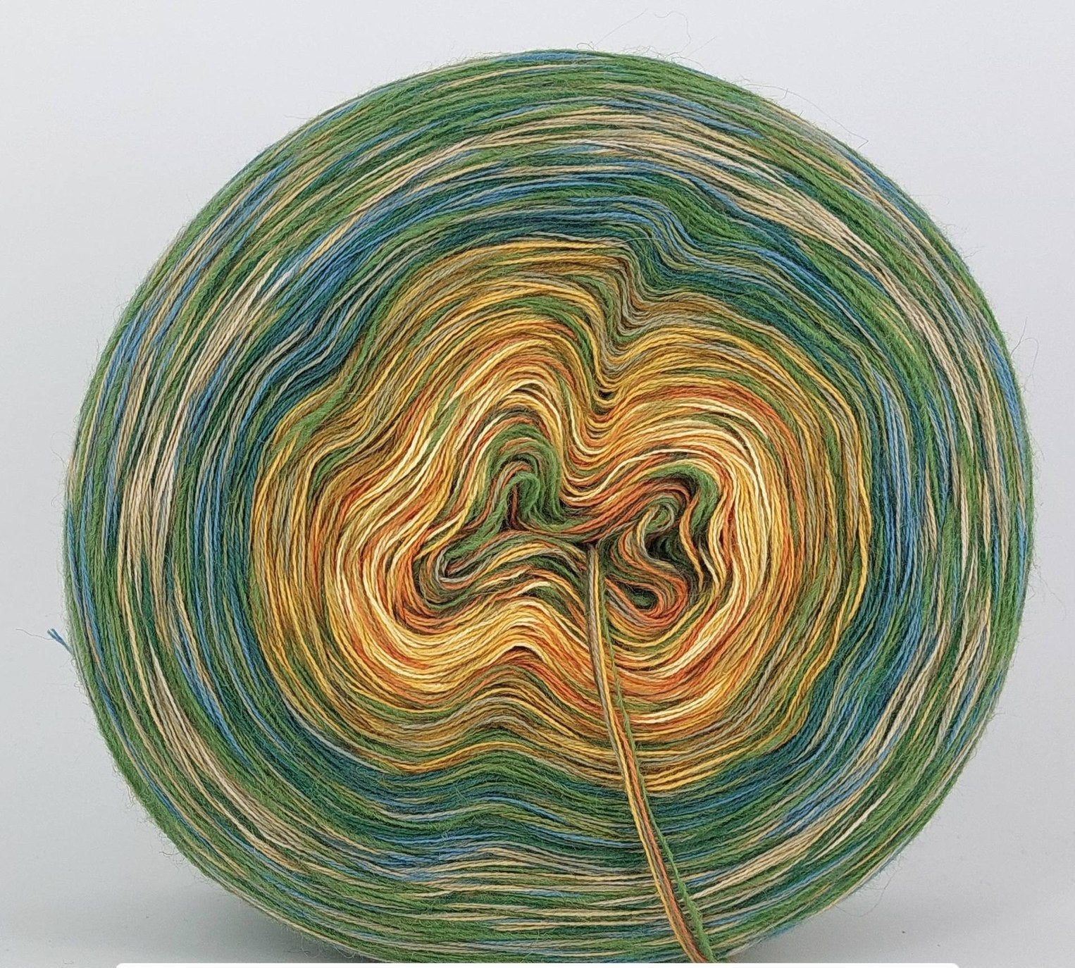 Bei der Tuchwicklung müsst ihr bei mir von innen beginnen. Hier wird jeder Farbabschnitt immer Länger, sodass die "Balken" im Tuch ungefähr gleich dick bleiben. Bei einer Normalen Wicklung sind alle Farbabschnitte gleichlang.