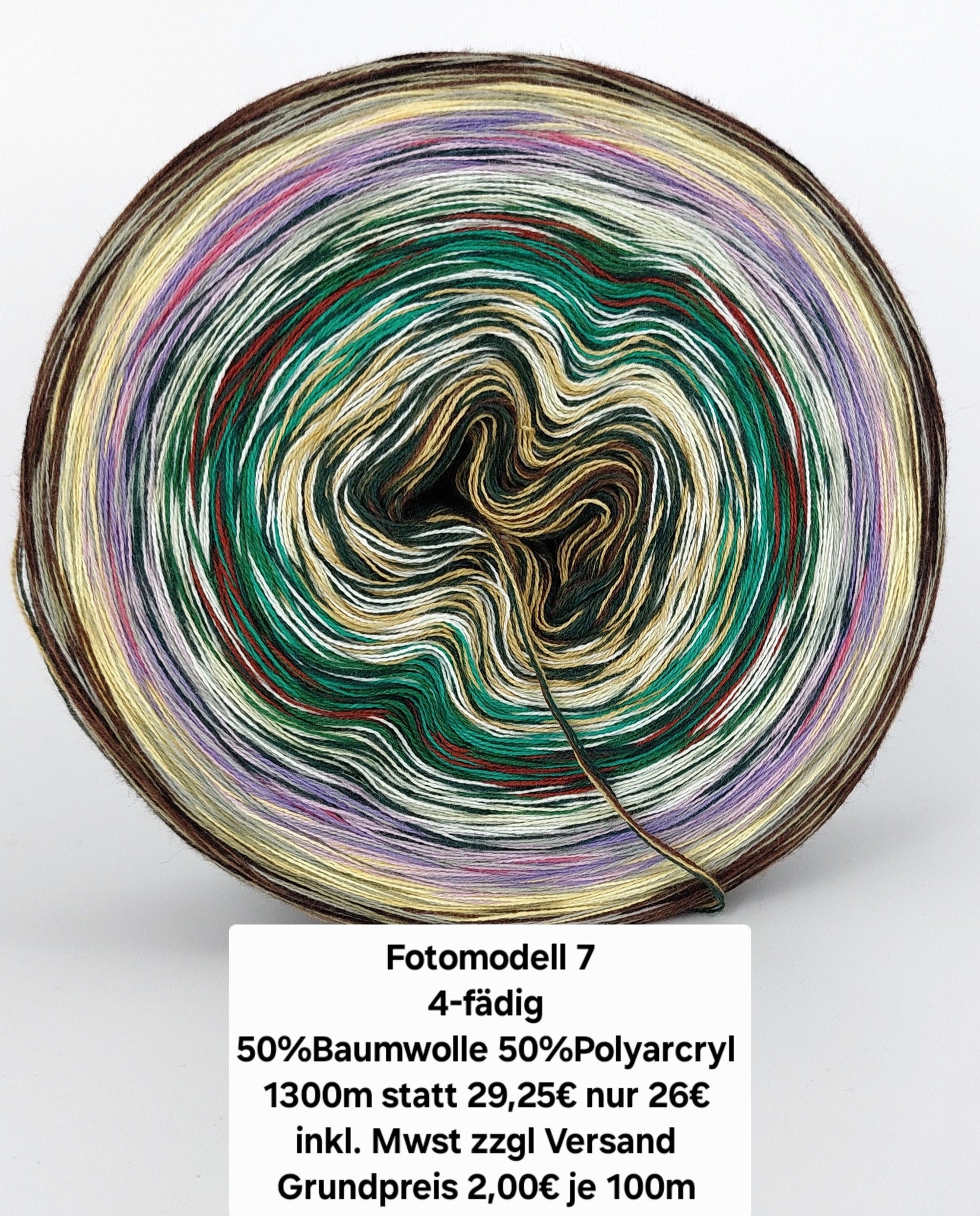 Der Bobbel ist bei den Farbübergängen mit kleinen Knoten (Frankfurter Knoten) verbunden, die super sicher sind und kaum spürbar. Es wechselt immer nur 1 Faden von den 4 gefachten Fäden. Das Garn ist gefacht und nicht verzwirnt .