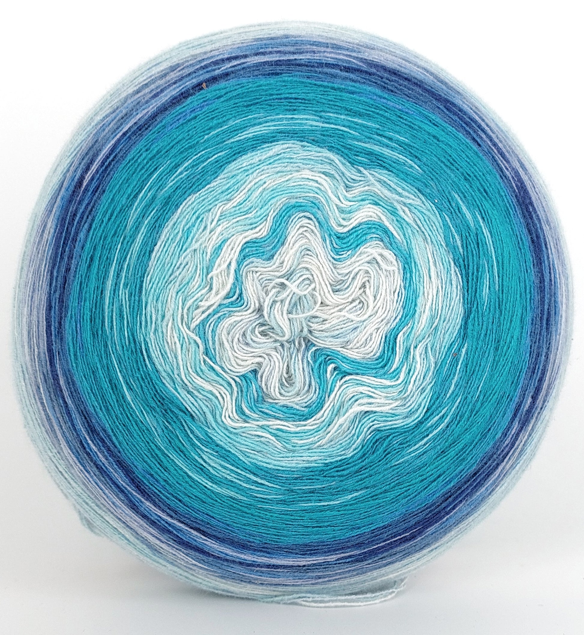 Bei der Tuchwicklung müsst ihr bei mir von innen beginnen. Hier wird jeder Farbabschnitt immer Länger, sodass die "Balken" im Tuch ungefähr gleich dick bleiben. Bei einer Normalen Wicklung sind alle Farbabschnitte gleichlang.