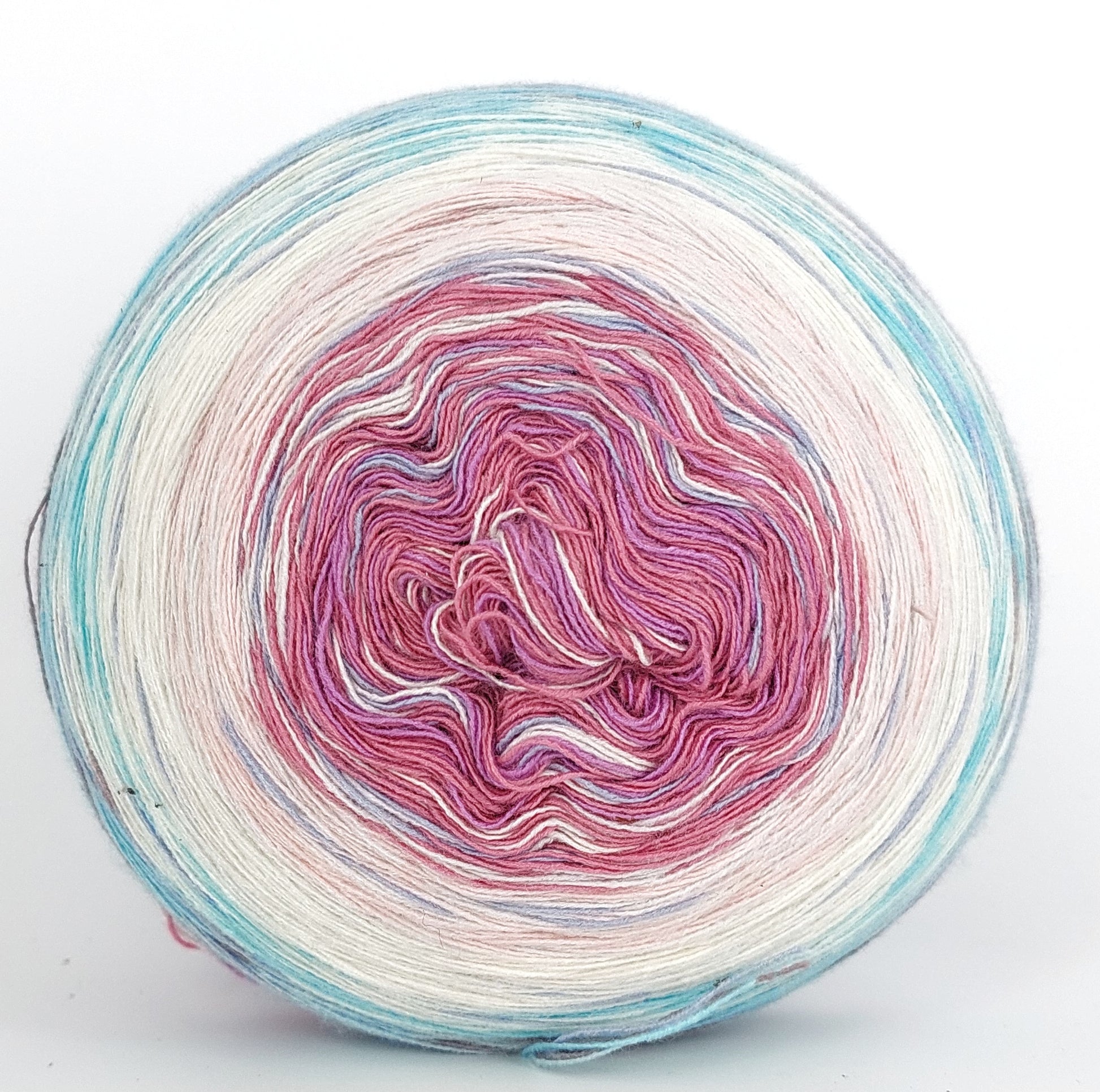 Bei der Tuchwicklung müsst ihr bei mir von innen beginnen. Hier wird jeder Farbabschnitt immer Länger, sodass die "Balken" im Tuch ungefähr gleich dick bleiben. Bei einer Normalen Wicklung sind alle Farbabschnitte gleichlang.