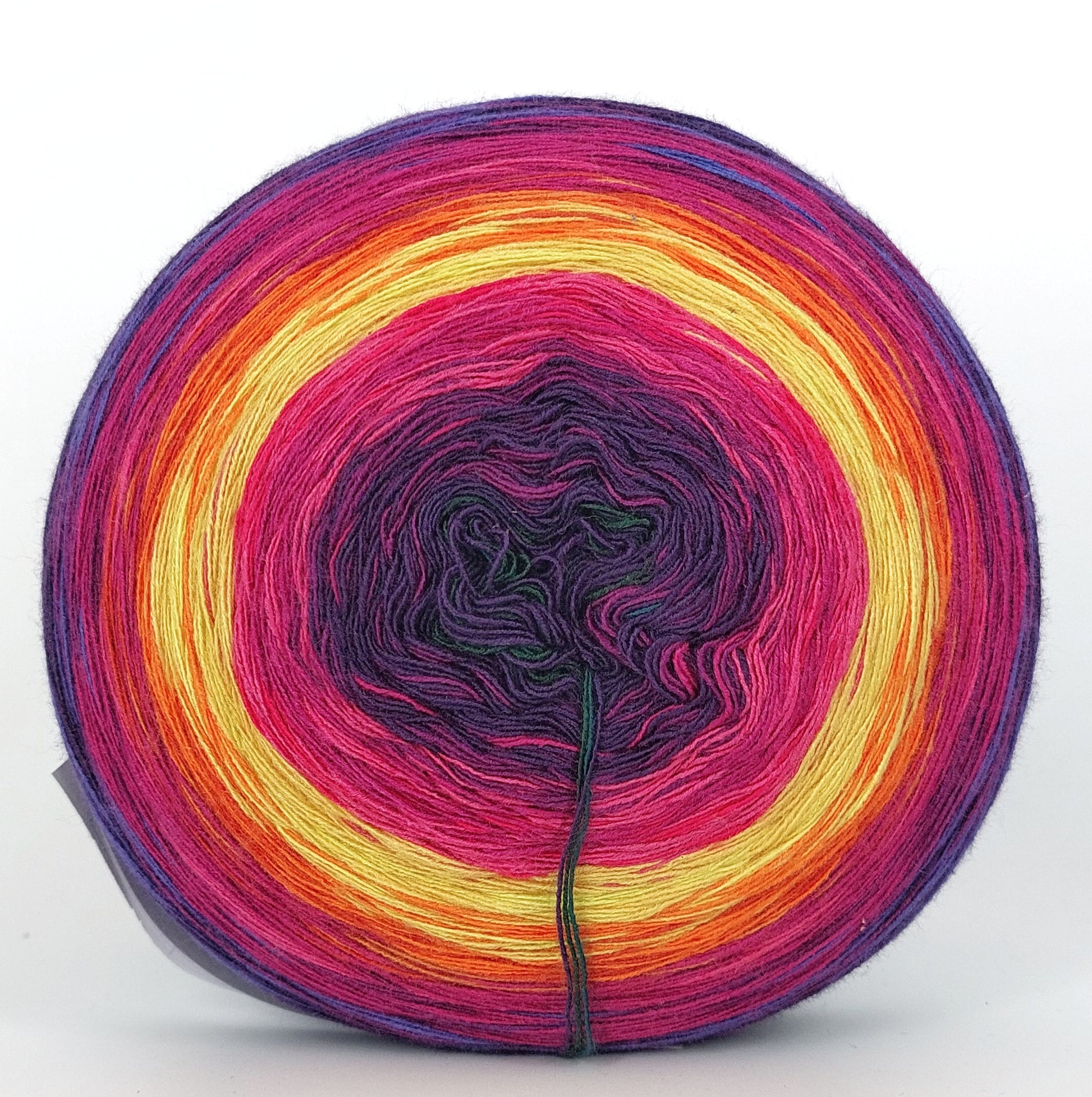 Bei der Tuchwicklung müsst ihr bei mir von innen beginnen. Hier wird jeder Farbabschnitt immer Länger, sodass die "Balken" im Tuch ungefähr gleich dick bleiben. Bei einer Normalen Wicklung sind alle Farbabschnitte gleichlang.