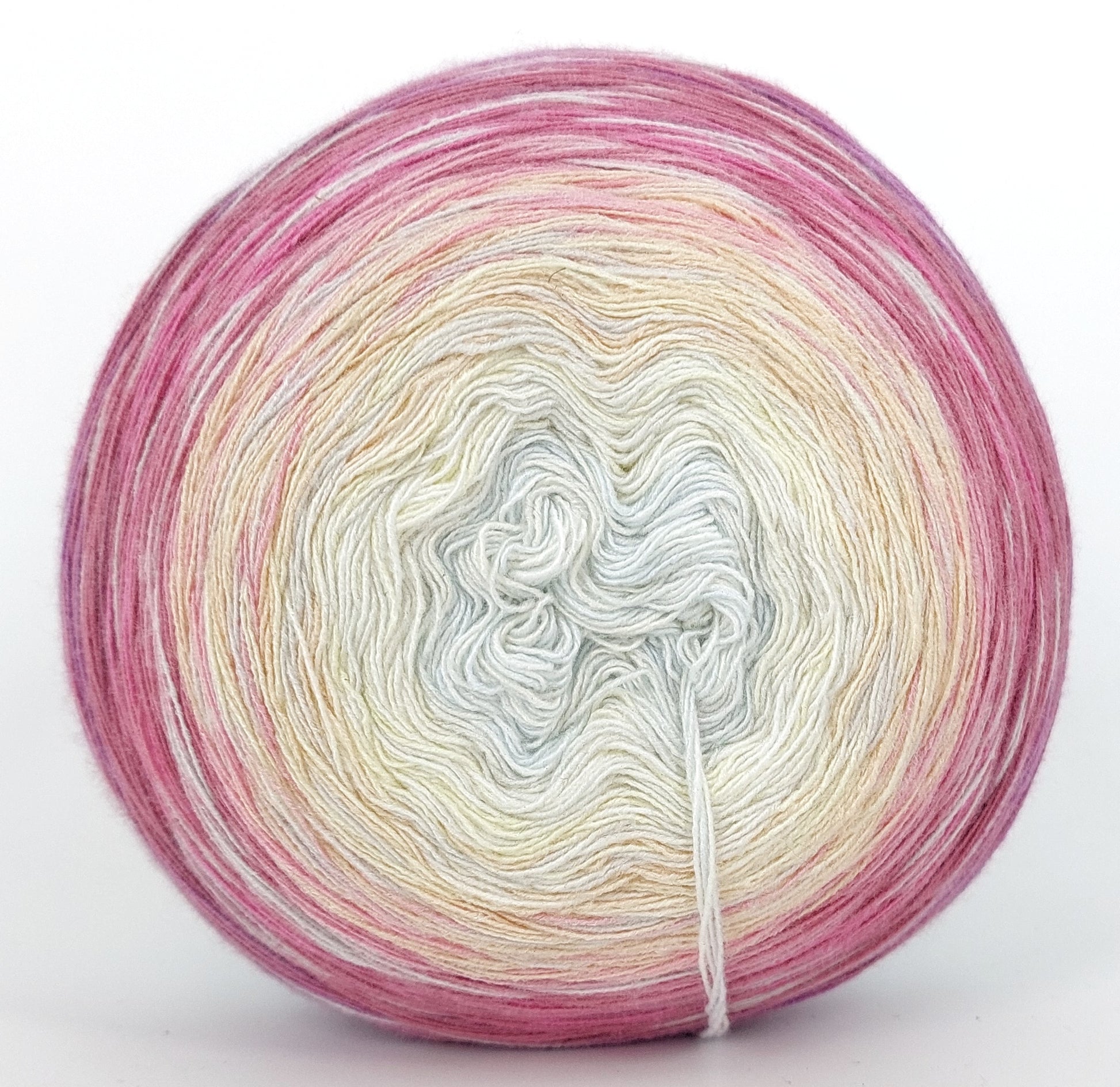 Bei der Tuchwicklung müsst ihr bei mir von innen beginnen. Hier wird jeder Farbabschnitt immer Länger, sodass die "Balken" im Tuch ungefähr gleich dick bleiben. Bei einer Normalen Wicklung sind alle Farbabschnitte gleichlang.