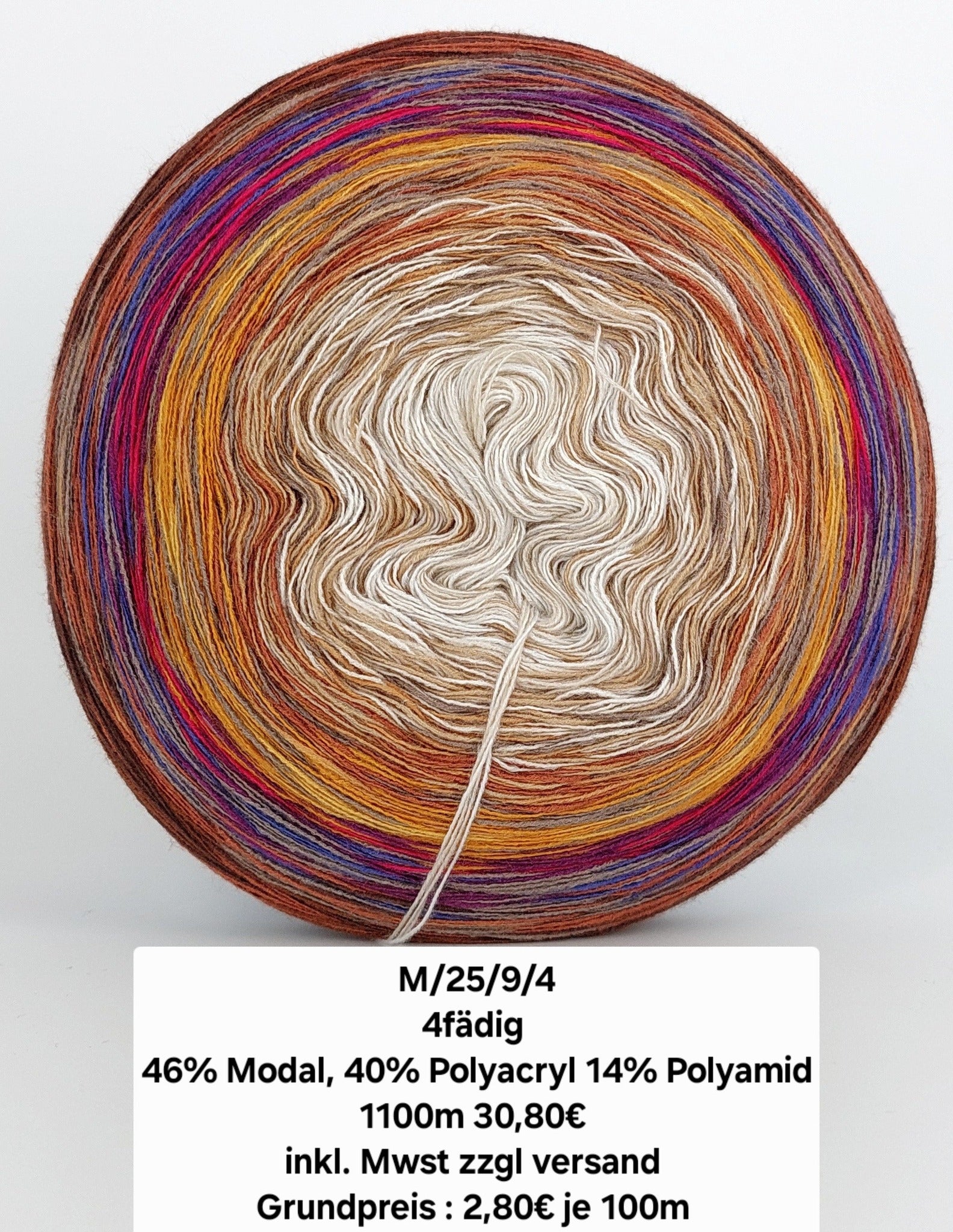 Bei der Tuchwicklung müsst ihr bei mir von innen beginnen. Hier wird jeder Farbabschnitt immer Länger, sodass die "Balken" im Tuch ungefähr gleich dick bleiben. Bei einer Normalen Wicklung sind alle Farbabschnitte gleichlang.