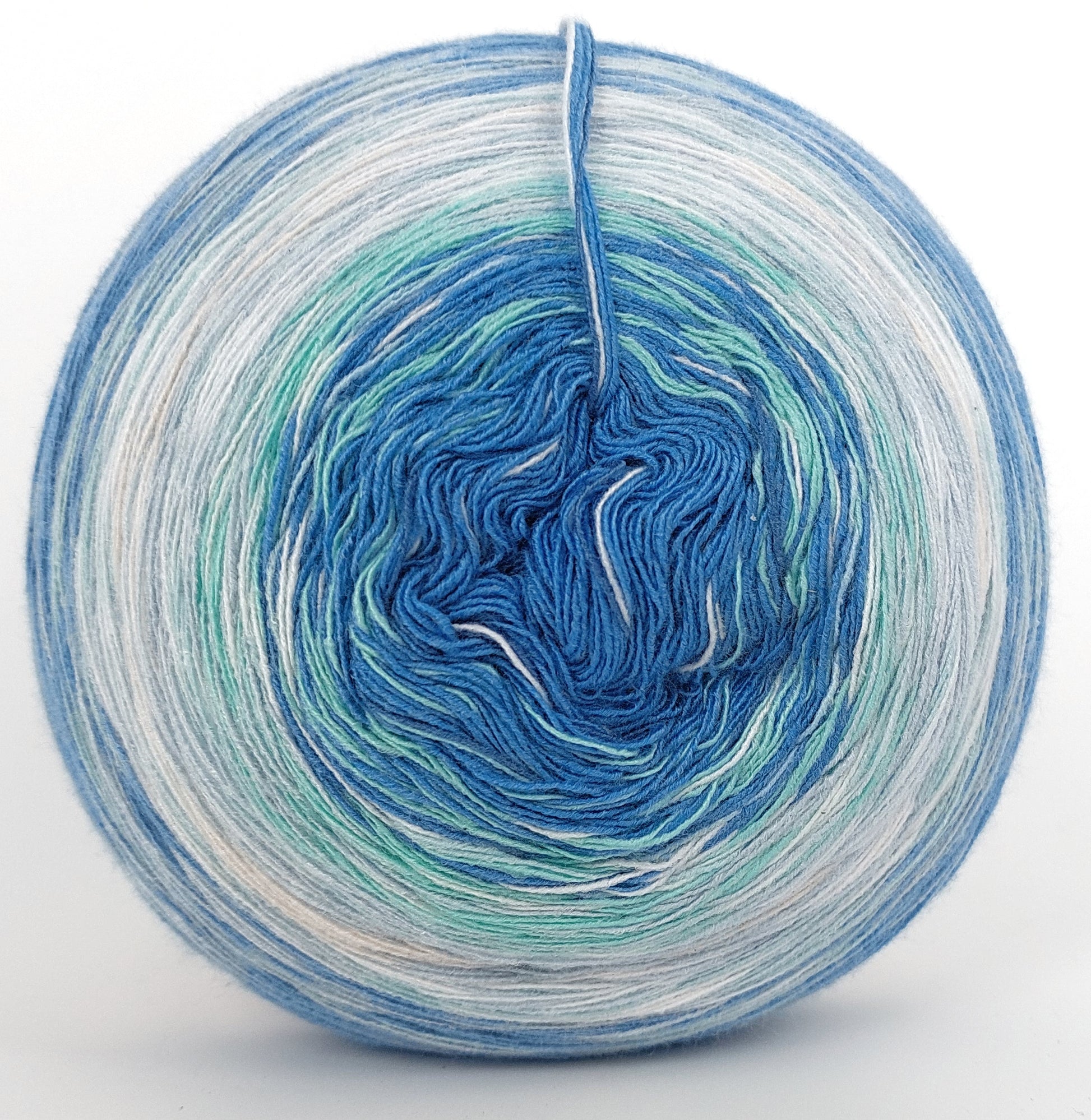 Der Bobbel ist bei den Farbübergängen mit kleinen Knoten (Frankfurter Knoten) verbunden, die super sicher sind und kaum spürbar. Es wechselt immer nur 1 Faden von den 4 gefachten Fäden. Das Garn ist gefacht und nicht verzwirnt.