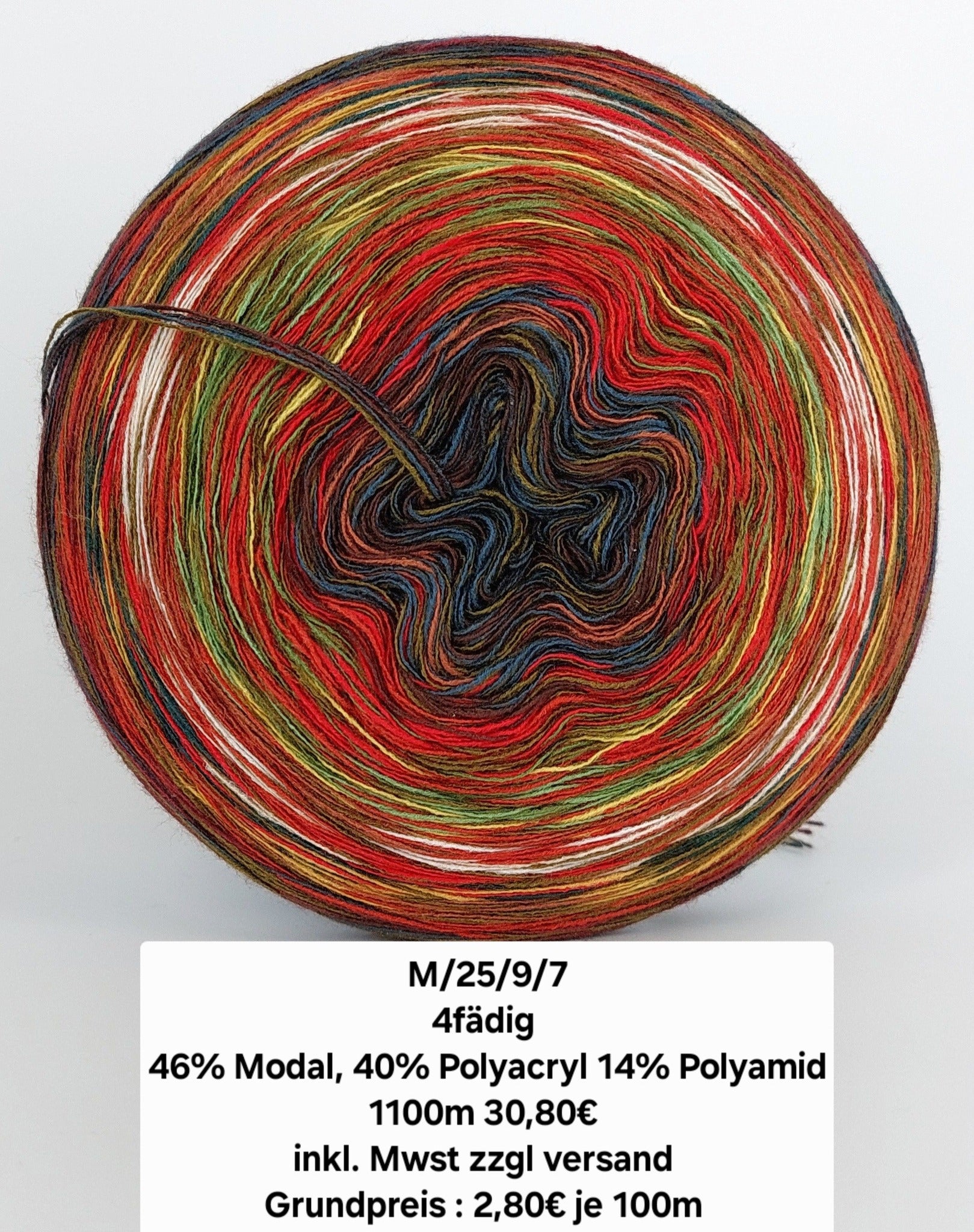 Bei der Tuchwicklung müsst ihr bei mir von innen beginnen. Hier wird jeder Farbabschnitt immer Länger, sodass die "Balken" im Tuch ungefähr gleich dick bleiben. Bei einer Normalen Wicklung sind alle Farbabschnitte gleichlang.