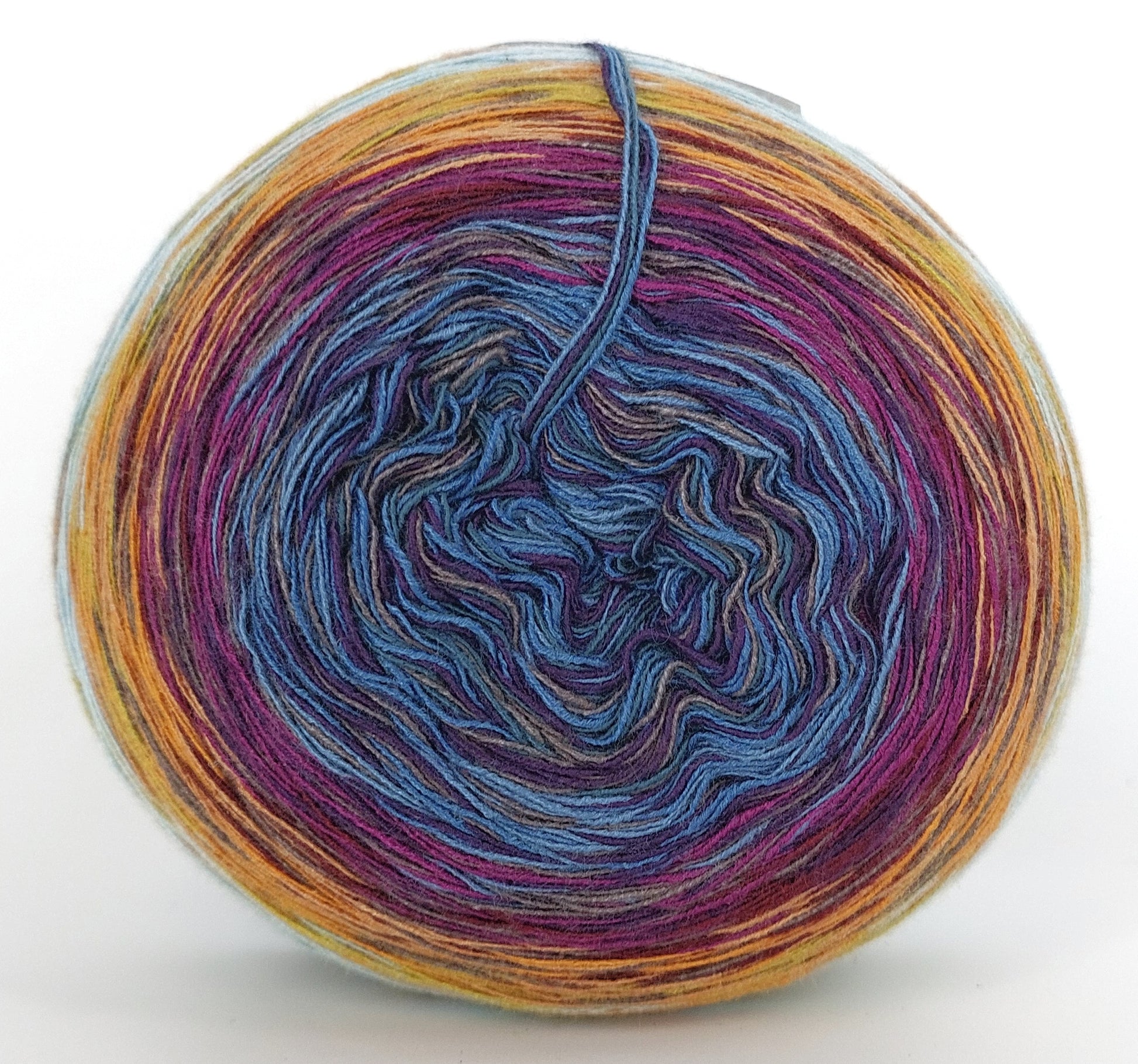 Bei der Tuchwicklung müsst ihr bei mir von innen beginnen. Hier wird jeder Farbabschnitt immer Länger, sodass die "Balken" im Tuch ungefähr gleich dick bleiben. Bei einer Normalen Wicklung sind alle Farbabschnitte gleichlang.