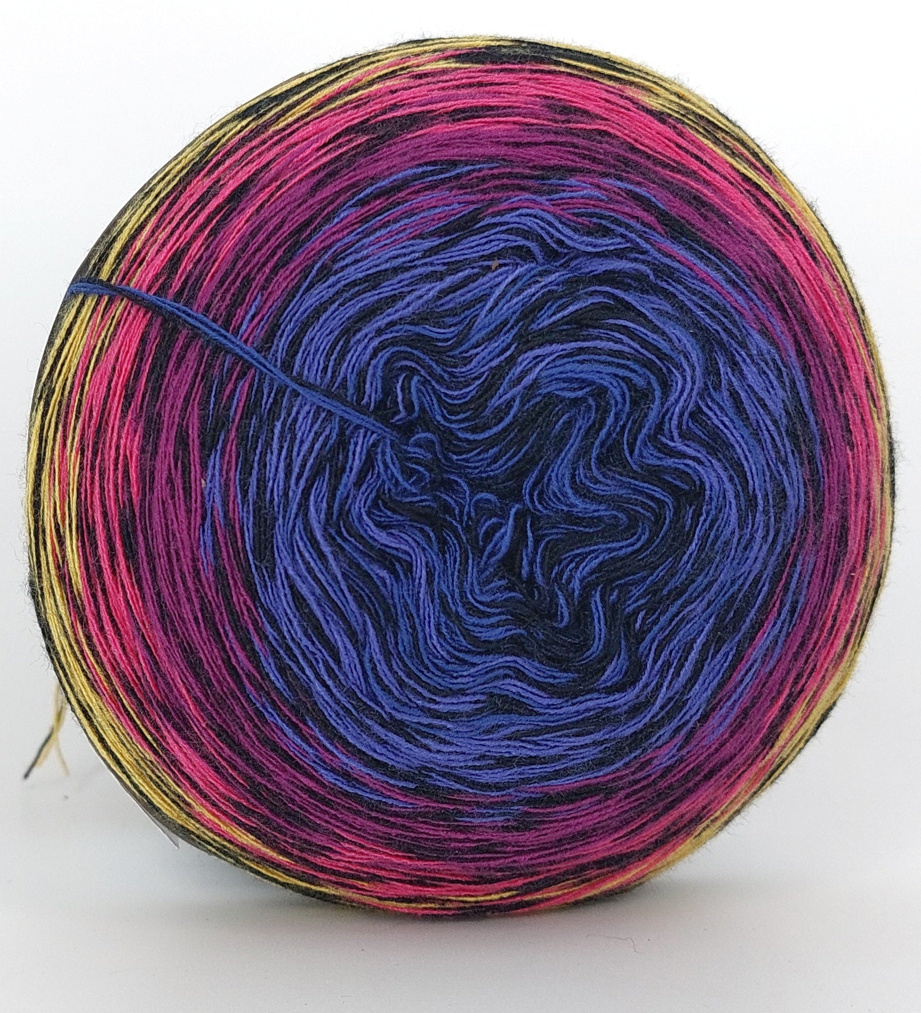 Bei der Tuchwicklung müsst ihr bei mir von innen beginnen. Hier wird jeder Farbabschnitt immer Länger, sodass die "Balken" im Tuch ungefähr gleich dick bleiben. Bei einer Normalen Wicklung sind alle Farbabschnitte gleichlang.