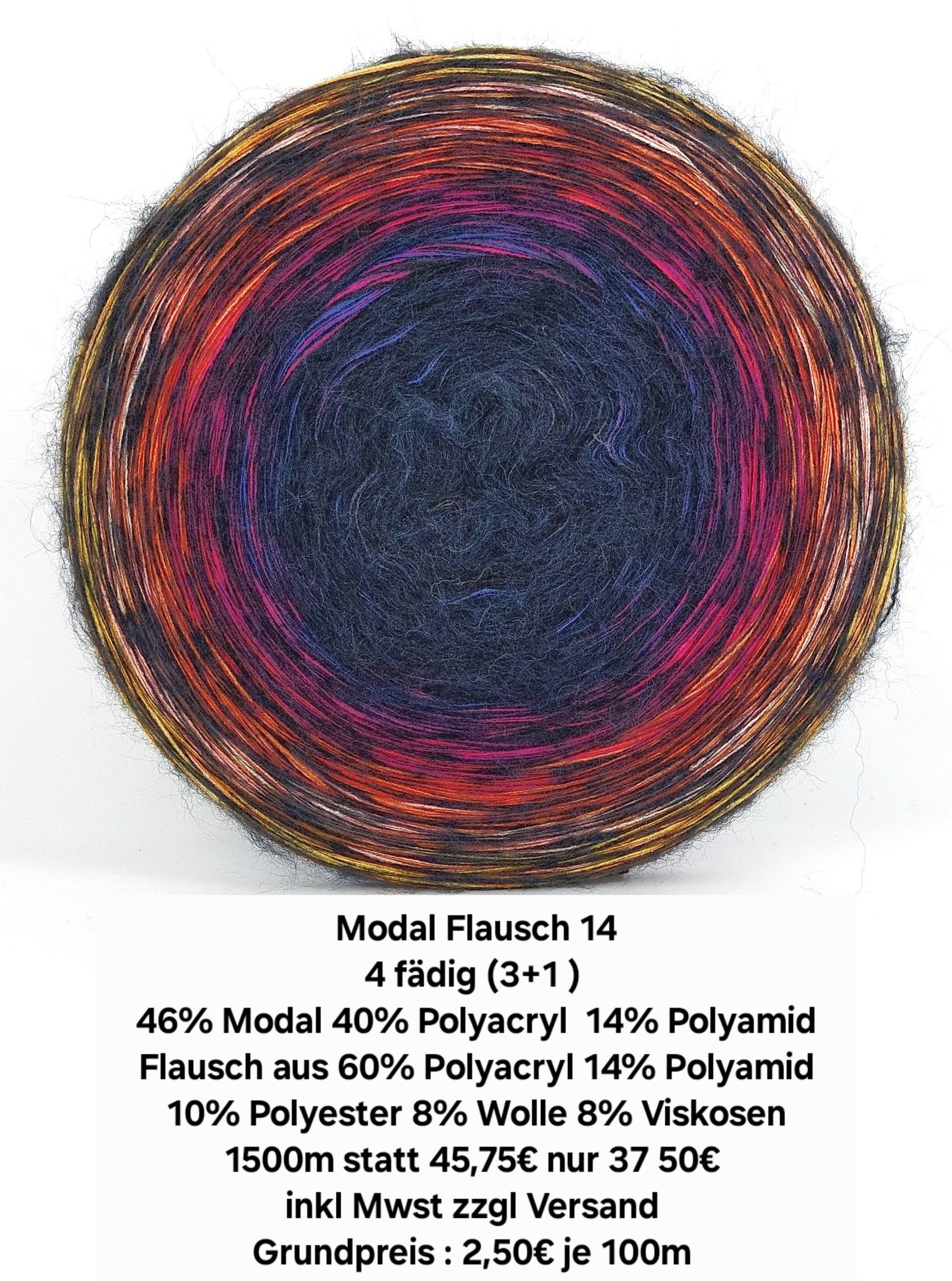 Flausch aus 60% Polyacryl 14% Polyamid 10% Polyester 14% Polyamid 10% Polyester 8% Wolle 8% Viskose