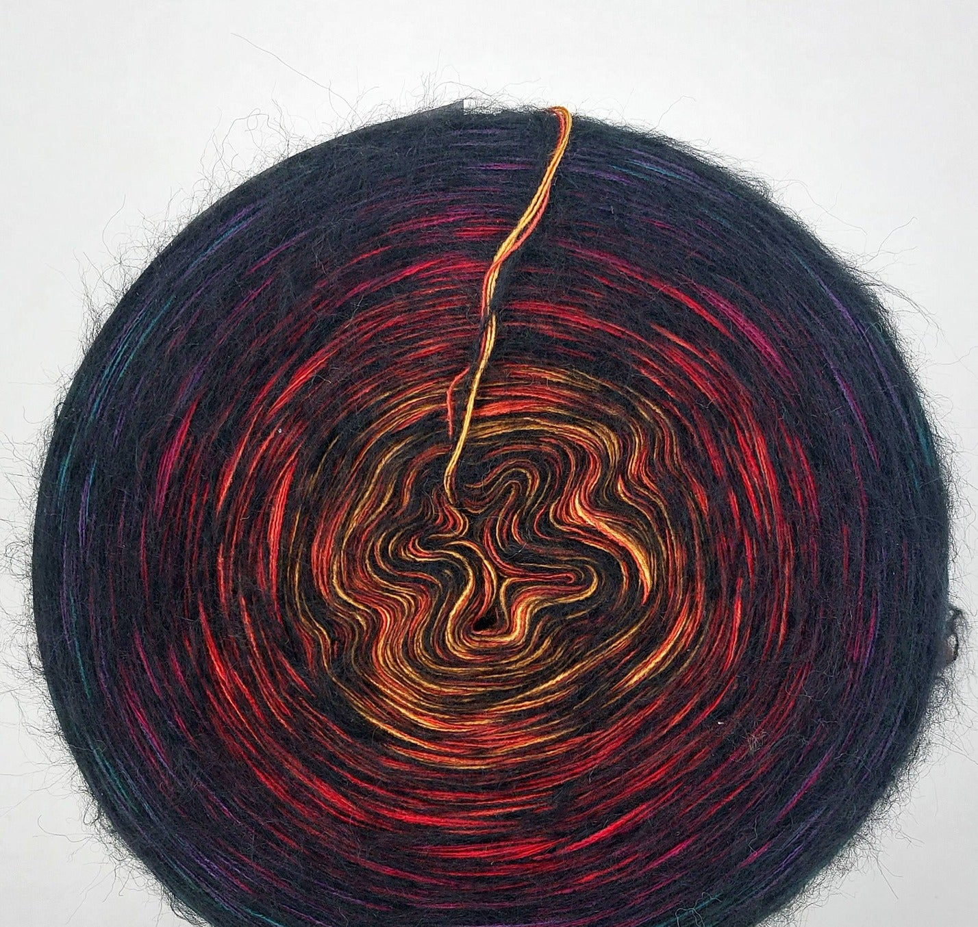 Bei der Tuchwicklung müsst ihr bei mir von innen beginnen. Hier wird jeder Farbabschnitt immer Länger, sodass die "Balken" im Tuch ungefähr gleich dick bleiben. Bei einer Normalen Wicklung sind alle Farbabschnitte gleichlang.