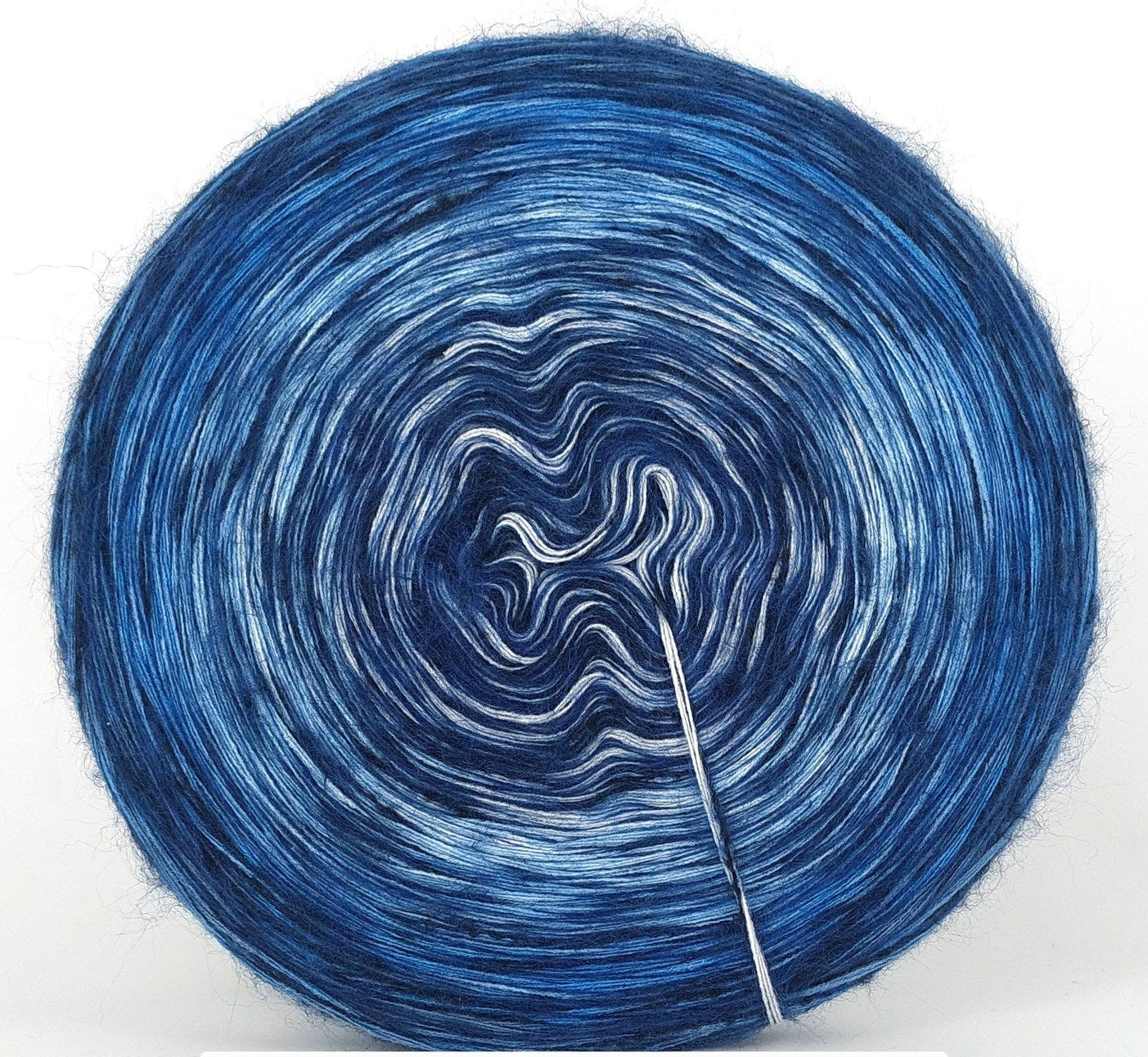 Bei der Tuchwicklung müsst ihr bei mir von innen beginnen. Hier wird jeder Farbabschnitt immer Länger, sodass die "Balken" im Tuch ungefähr gleich dick bleiben. Bei einer Normalen Wicklung sind alle Farbabschnitte gleichlang.