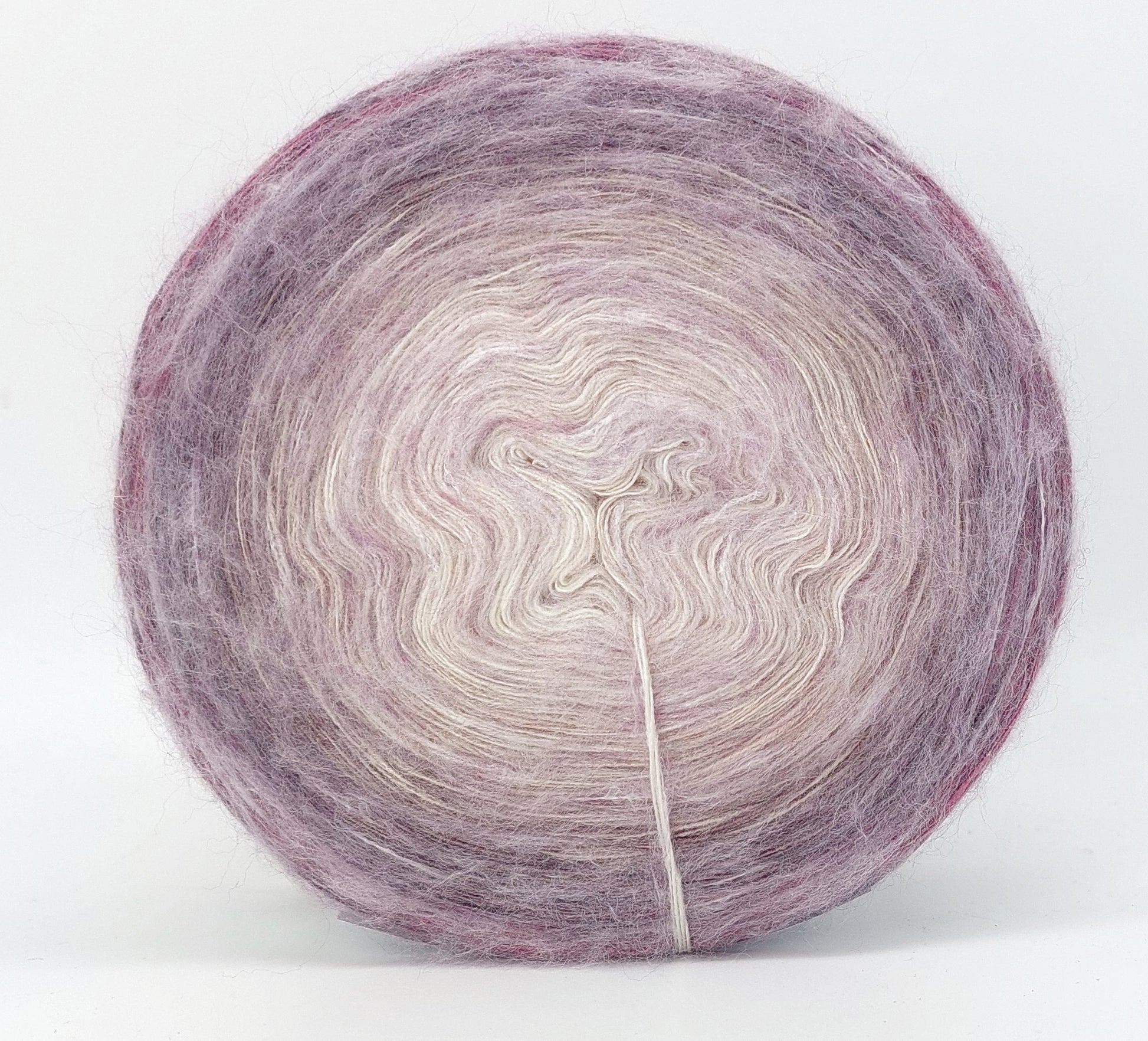 Bei der Tuchwicklung müsst ihr bei mir von innen beginnen. Hier wird jeder Farbabschnitt immer Länger, sodass die "Balken" im Tuch ungefähr gleich dick bleiben. Bei einer Normalen Wicklung sind alle Farbabschnitte gleichlang.