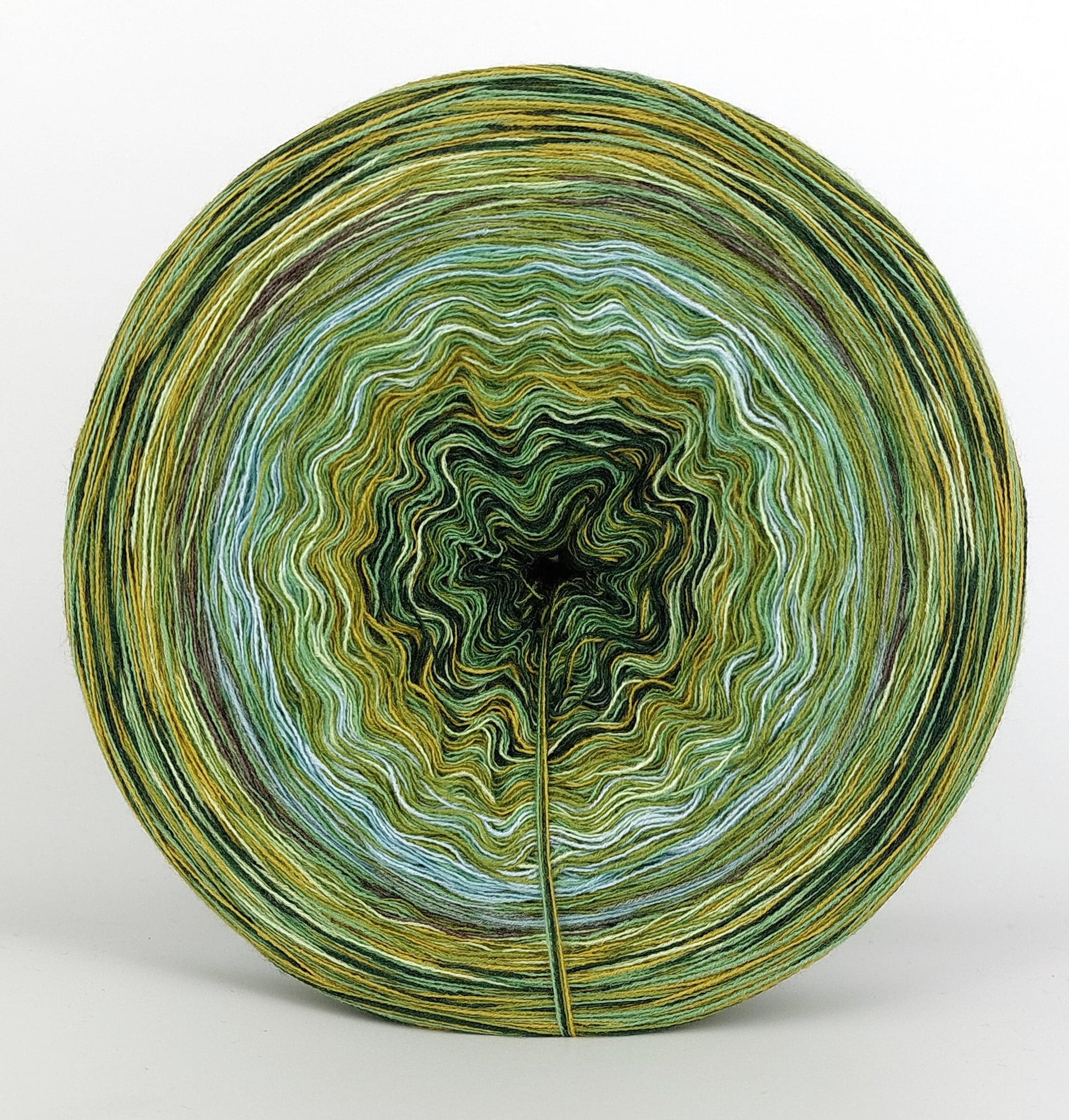 Bei der Tuchwicklung müsst ihr bei mir von innen beginnen. Hier wird jeder Farbabschnitt immer Länger, sodass die "Balken" im Tuch ungefähr gleich dick bleiben. Bei einer Normalen Wicklung sind alle Farbabschnitte gleichlang.