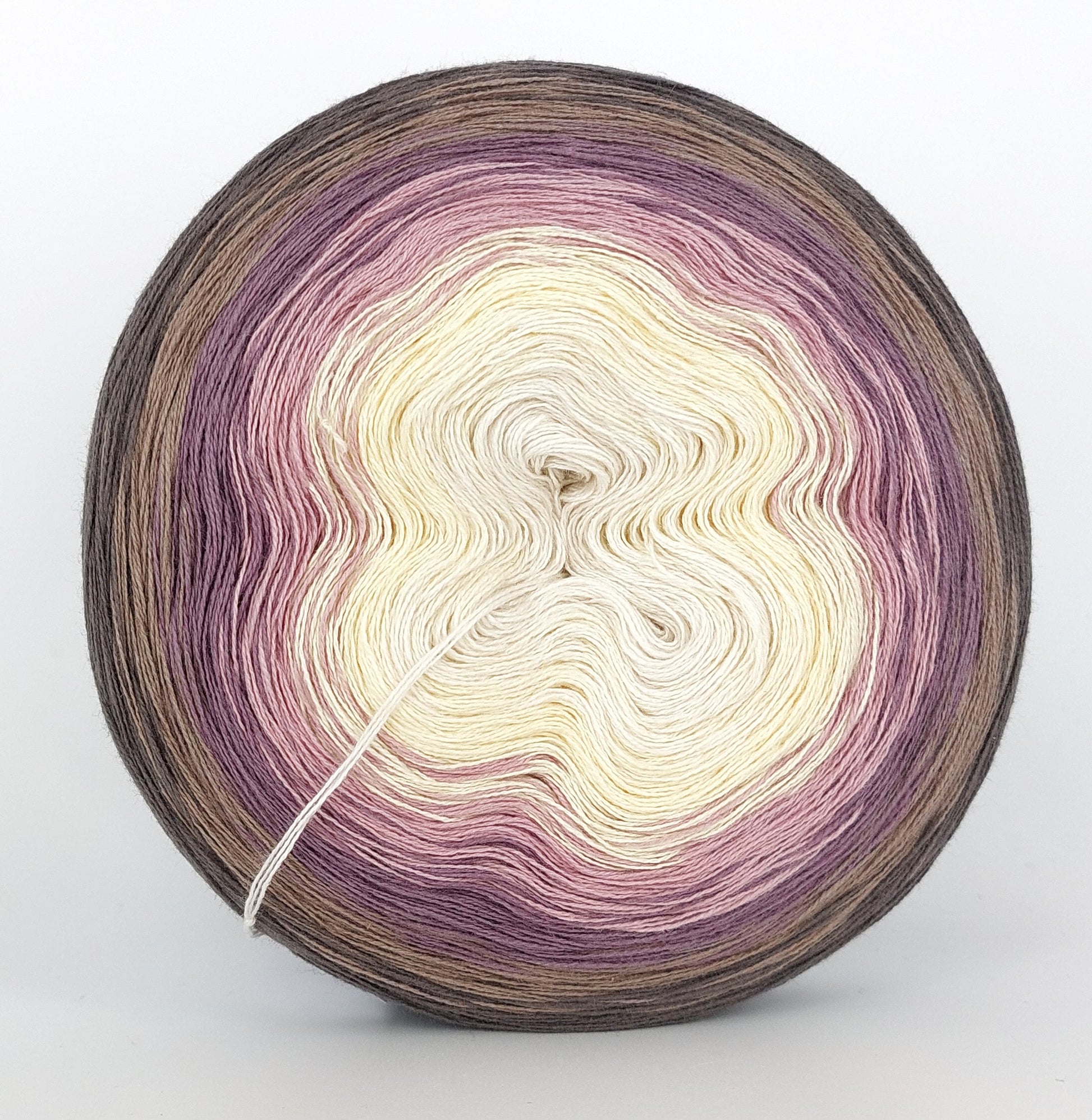 Bei der Tuchwicklung müsst ihr bei mir von innen beginnen. Hier wird jeder Farbabschnitt immer Länger, sodass die "Balken" im Tuch ungefähr gleich dick bleiben. Bei einer Normalen Wicklung sind alle Farbabschnitte gleichlang.