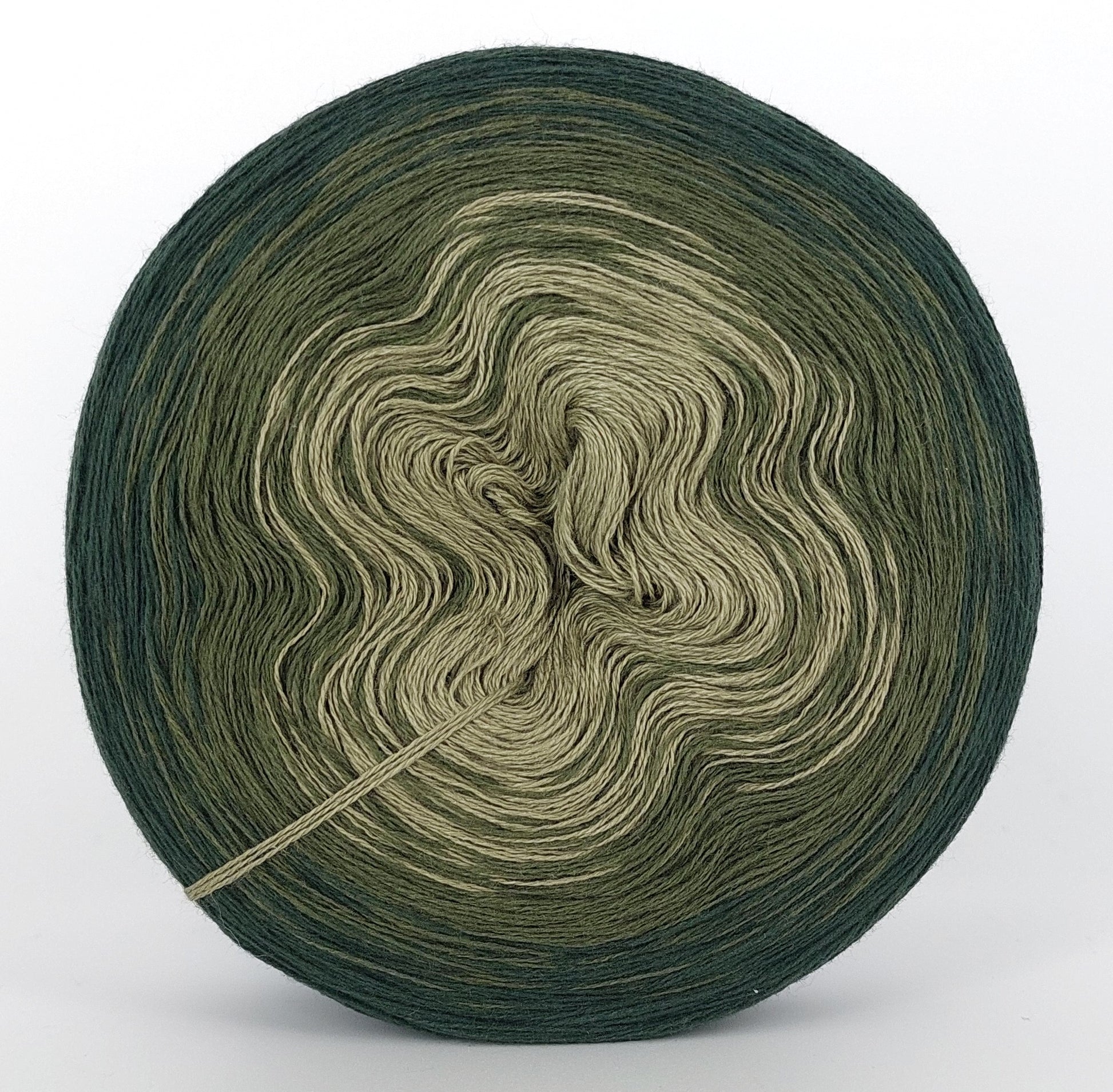 Bei der Tuchwicklung müsst ihr bei mir von innen beginnen. Hier wird jeder Farbabschnitt immer Länger, sodass die "Balken" im Tuch ungefähr gleich dick bleiben. Bei einer Normalen Wicklung sind alle Farbabschnitte gleichlang.