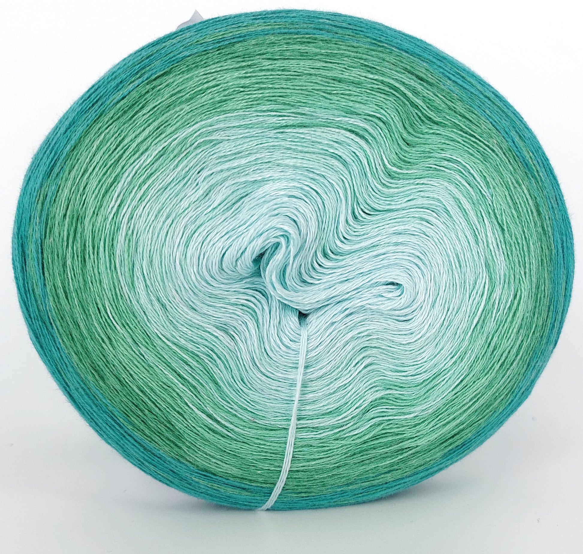 Der Bobbel ist bei den Farbübergängen mit kleinen Knoten (Frankfurter Knoten) verbunden, die super sicher sind und kaum spürbar. Es wechselt immer nur 1 Faden von den gefachten Fäden. Das Garn ist gefacht und nicht verzwirnt.