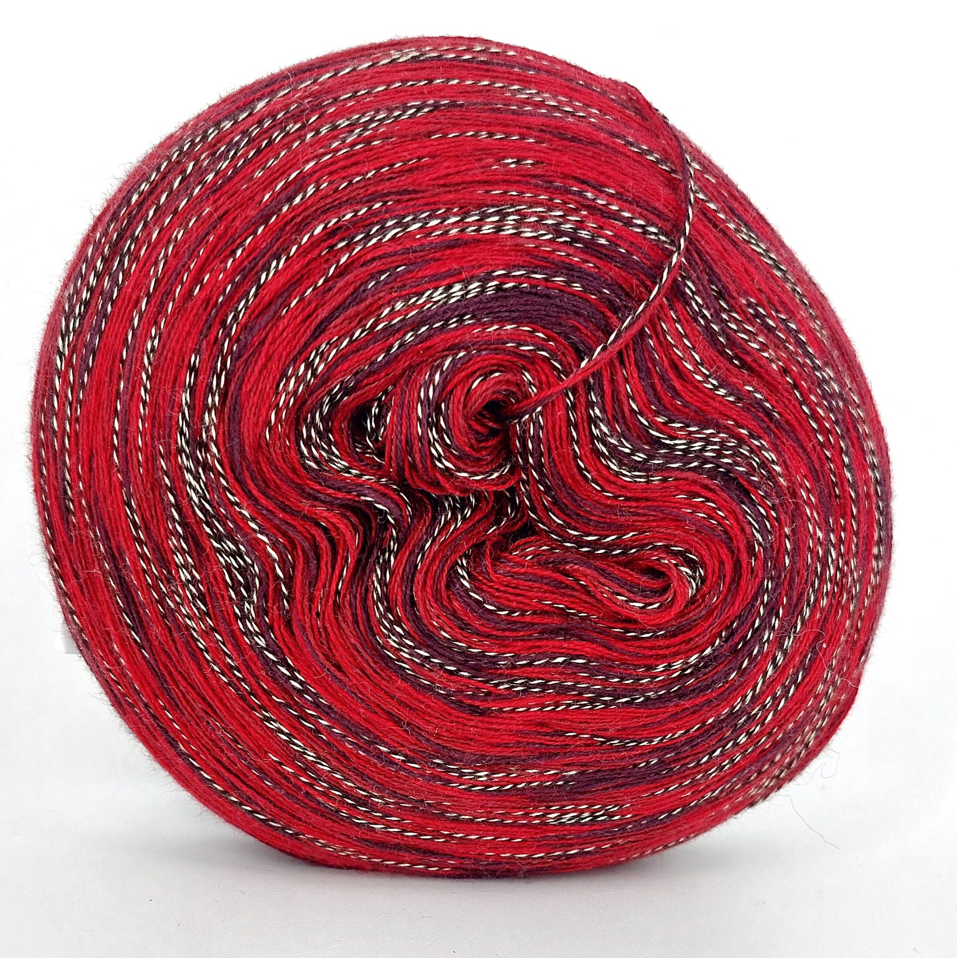 Bei der Tuchwicklung müsst ihr bei mir von innen beginnen. Hier wird jeder Farbabschnitt immer Länger, sodass die "Balken" im Tuch ungefähr gleich dick bleiben. Bei einer Normalen Wicklung sind alle Farbabschnitte gleichlang.