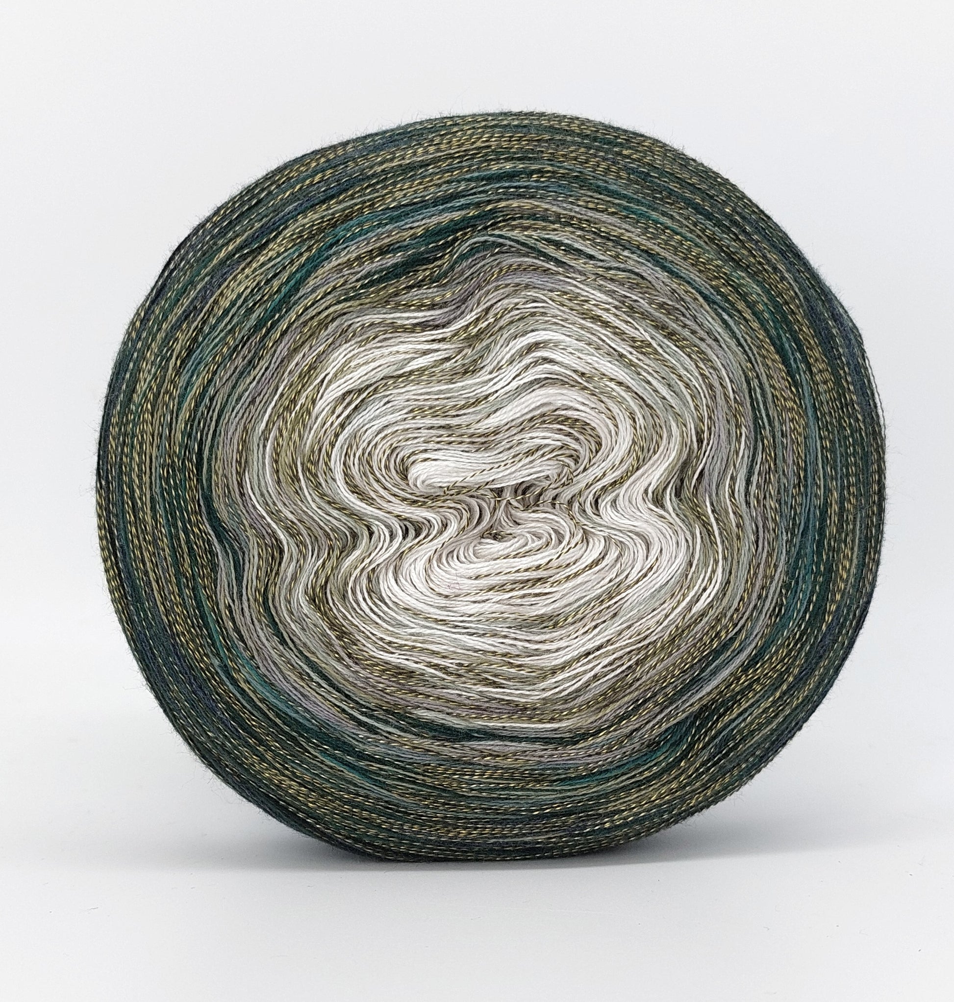 Bei der Tuchwicklung müsst ihr bei mir von innen beginnen. Hier wird jeder Farbabschnitt immer Länger, sodass die "Balken" im Tuch ungefähr gleich dick bleiben. Bei einer Normalen Wicklung sind alle Farbabschnitte gleichlang.