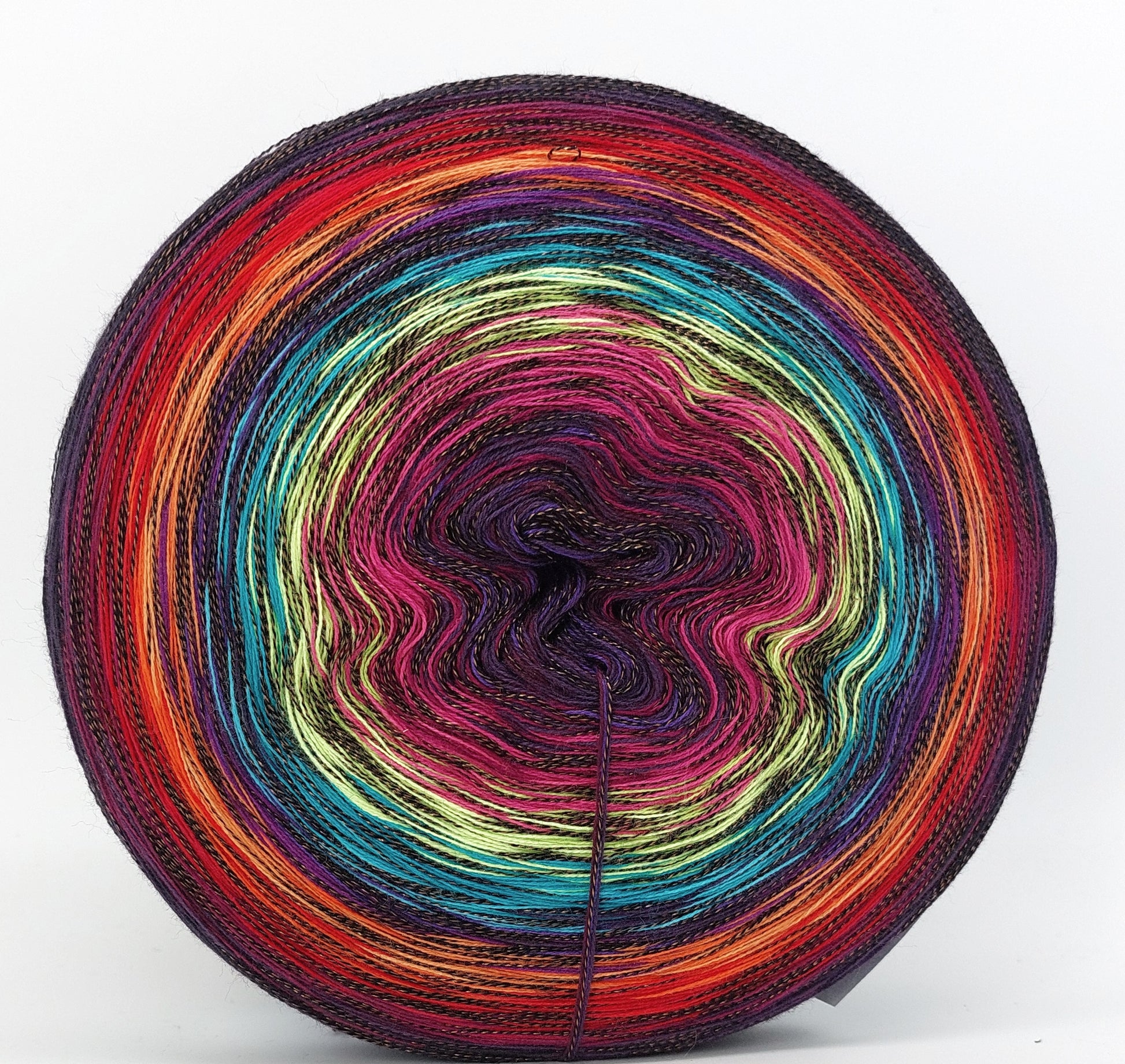 Bei der Tuchwicklung müsst ihr bei mir von innen beginnen. Hier wird jeder Farbabschnitt immer Länger, sodass die "Balken" im Tuch ungefähr gleich dick bleiben. Bei einer Normalen Wicklung sind alle Farbabschnitte gleichlang.
