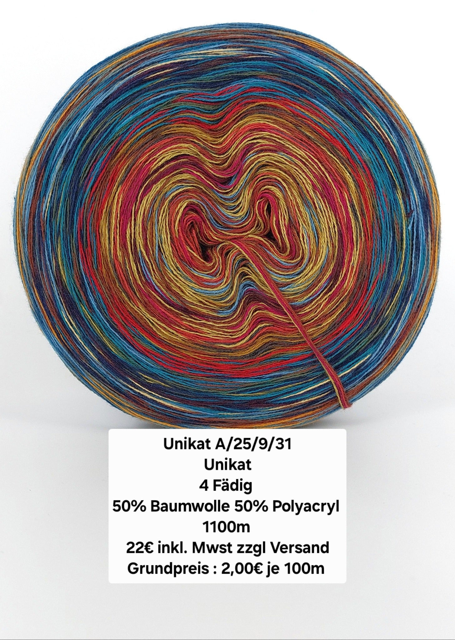 Der Bobbel ist bei den Farbübergängen mit kleinen Knoten (Frankfurter Knoten) verbunden, die super sicher sind und kaum spürbar. Es wechselt immer nur 1 Faden von den 4 gefachten Fäden. Das Garn ist gefacht und nicht verzwirnt .