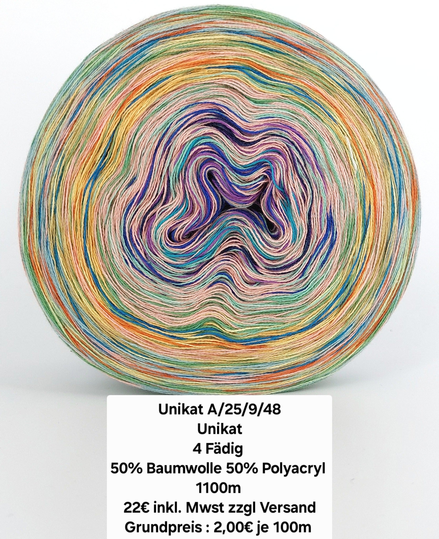 Der Bobbel ist bei den Farbübergängen mit kleinen Knoten (Frankfurter Knoten) verbunden, die super sicher sind und kaum spürbar. Es wechselt immer nur 1 Faden von den 4 gefachten Fäden. Das Garn ist gefacht und nicht verzwirnt .