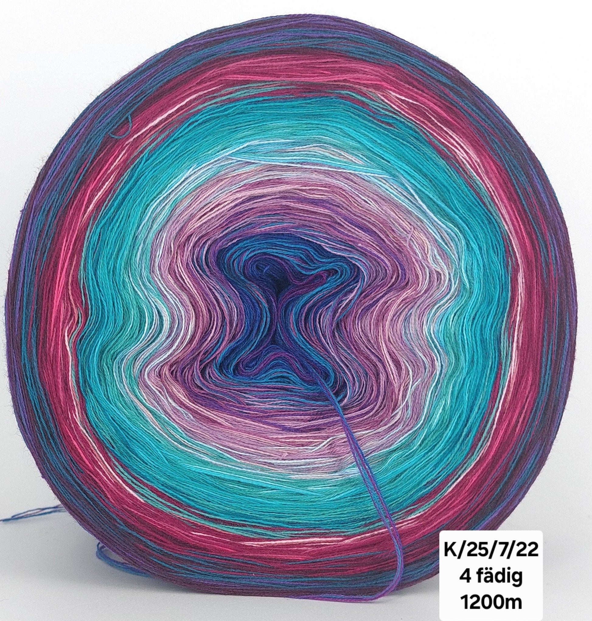 Der Bobbel ist bei den Farbübergängen mit kleinen Knoten (Frankfurter Knoten) verbunden, die super sicher sind und kaum spürbar. Es wechselt immer nur 1 Faden von den 4 gefachten Fäden. Das Garn ist gefacht und nicht verzwirnt .