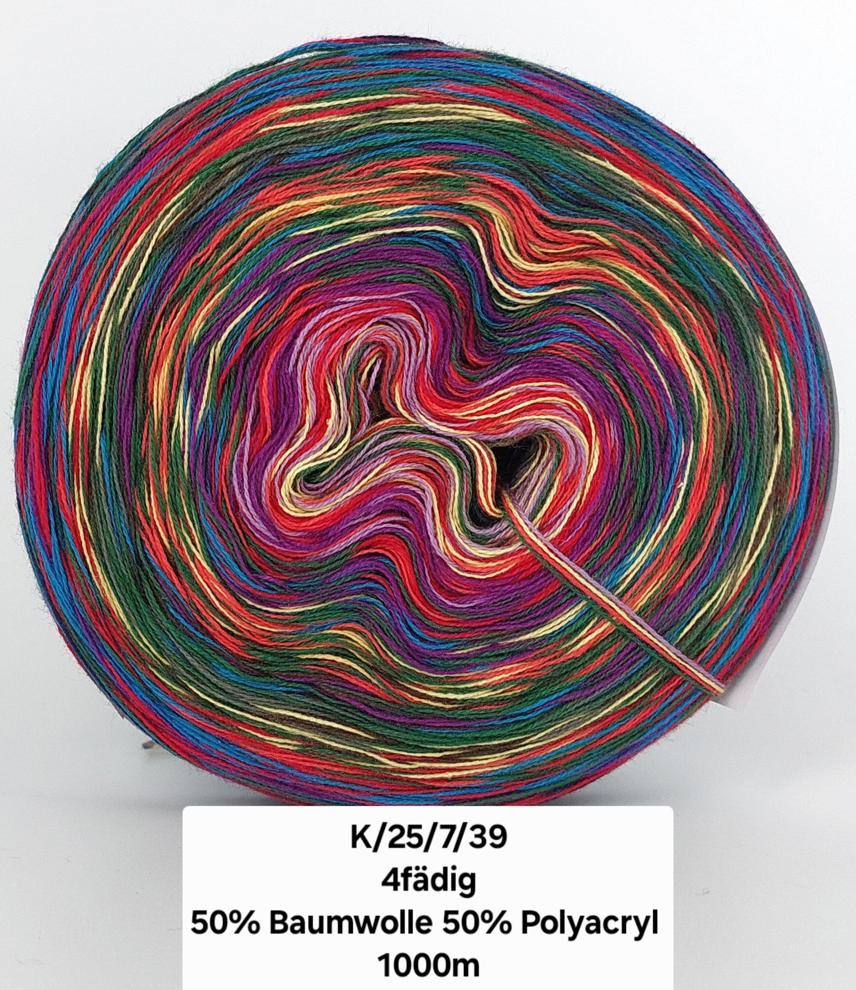 Der Bobbel ist bei den Farbübergängen mit kleinen Knoten (Frankfurter Knoten) verbunden, die super sicher sind und kaum spürbar. Es wechselt immer nur 1 Faden von den 4 gefachten Fäden. Das Garn ist gefacht und nicht verzwirnt .