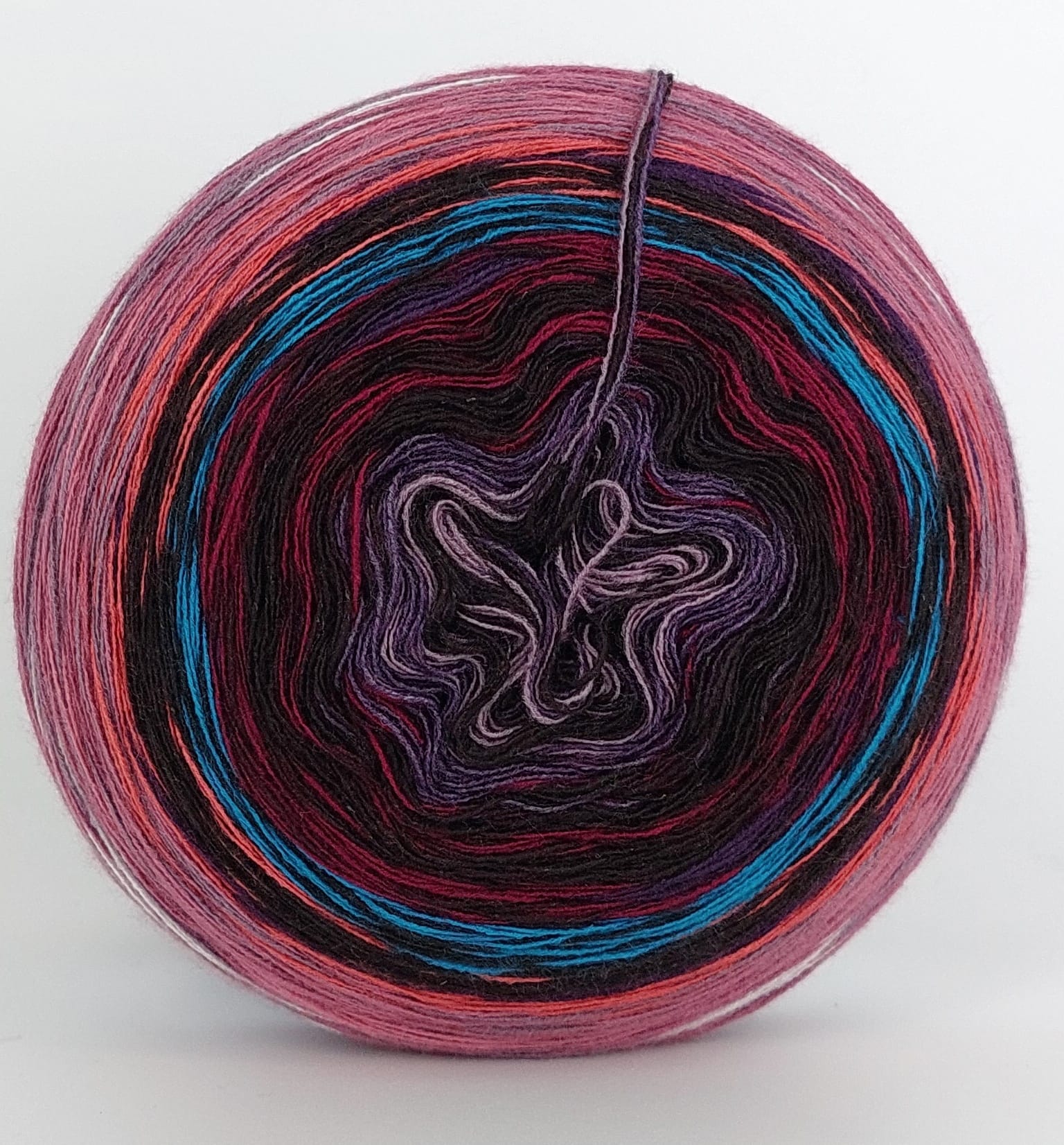 Bei der Tuchwicklung müsst ihr bei mir von innen beginnen. Hier wird jeder Farbabschnitt immer Länger, sodass die "Balken" im Tuch ungefähr gleich dick bleiben. Bei einer Normalen Wicklung sind alle Farbabschnitte gleichlang.