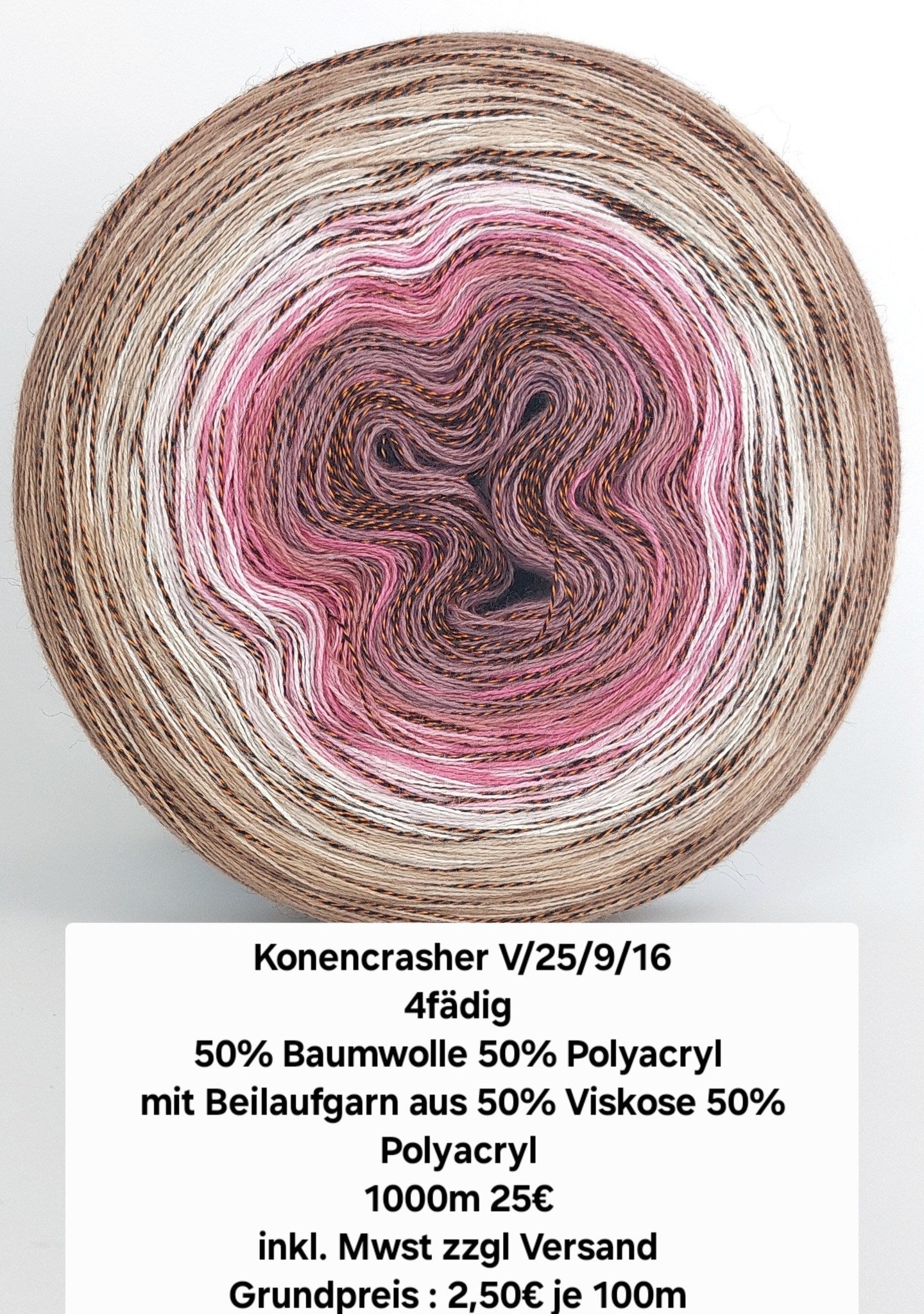 3 Fäden bestehen aus 50% Baumwolle 50% Polyacryl, 1 faden 50% Viskose 50% Polyacryl