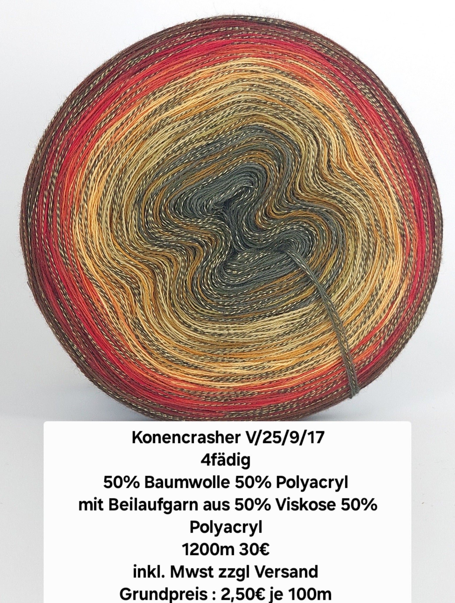 3 Fäden bestehen aus 50% Baumwolle 50% Polyacryl, 1 faden 50% Viskose 50% Polyacryl