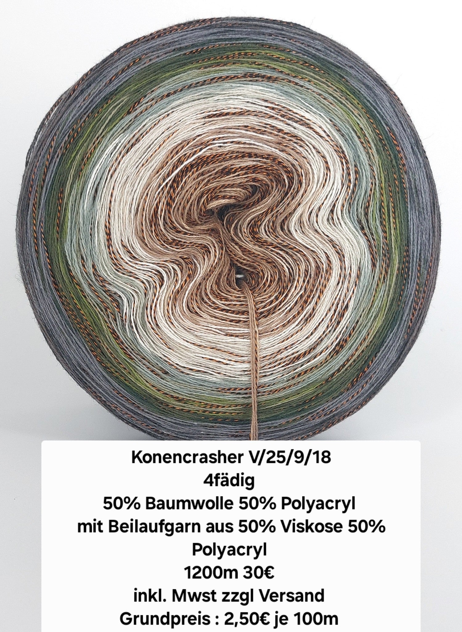 3 Fäden bestehen aus 50% Baumwolle 50% Polyacryl, 1 faden 50% Viskose 50% Polyacryl