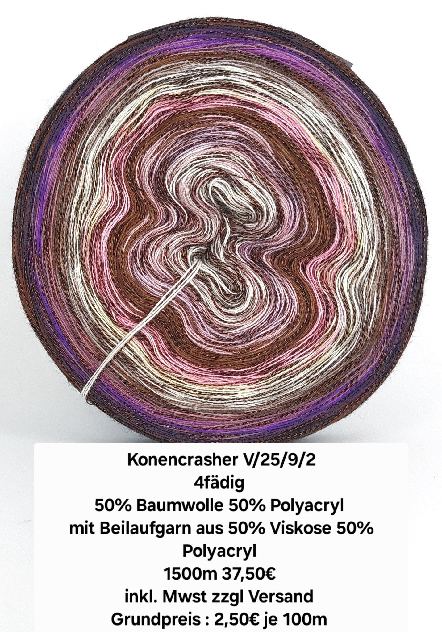 3 Fäden bestehen aus 50% Baumwolle 50% Polyacryl, 1 faden 50% Viskose 50% Polyacryl