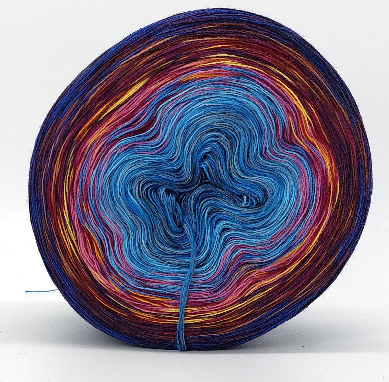 Bei der Tuchwicklung müsst ihr bei mir von innen beginnen. Hier wird jeder Farbabschnitt immer Länger, sodass die "Balken" im Tuch ungefähr gleich dick bleiben. Bei einer Normalen Wicklung sind alle Farbabschnitte gleichlang.