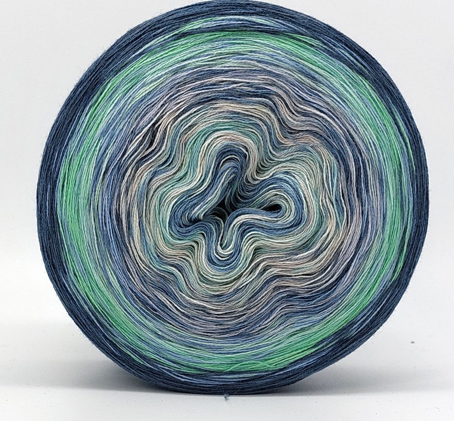 Bei der Tuchwicklung müsst ihr bei mir von innen beginnen. Hier wird jeder Farbabschnitt immer Länger, sodass die "Balken" im Tuch ungefähr gleich dick bleiben. Bei einer Normalen Wicklung sind alle Farbabschnitte gleichlang.