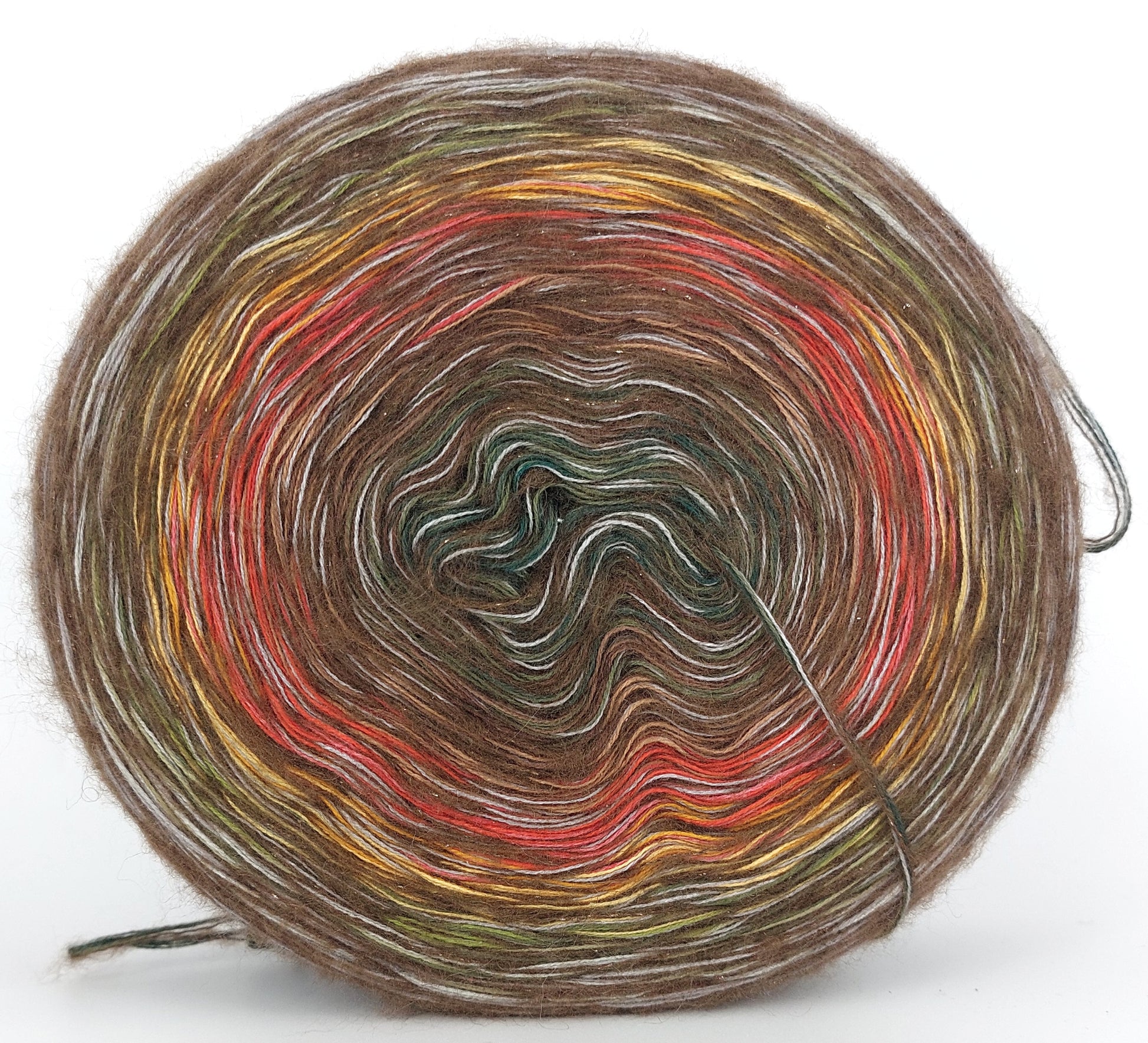 Bei der Tuchwicklung müsst ihr bei mir von innen beginnen. Hier wird jeder Farbabschnitt immer Länger, sodass die "Balken" im Tuch ungefähr gleich dick bleiben. Bei einer Normalen Wicklung sind alle Farbabschnitte gleichlang.