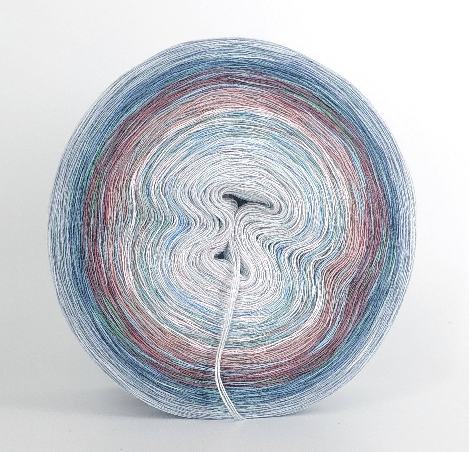 Bei der Tuchwicklung müsst ihr bei mir von innen beginnen. Hier wird jeder Farbabschnitt immer Länger, sodass die "Balken" im Tuch ungefähr gleich dick bleiben. Bei einer Normalen Wicklung sind alle Farbabschnitte gleichlang.