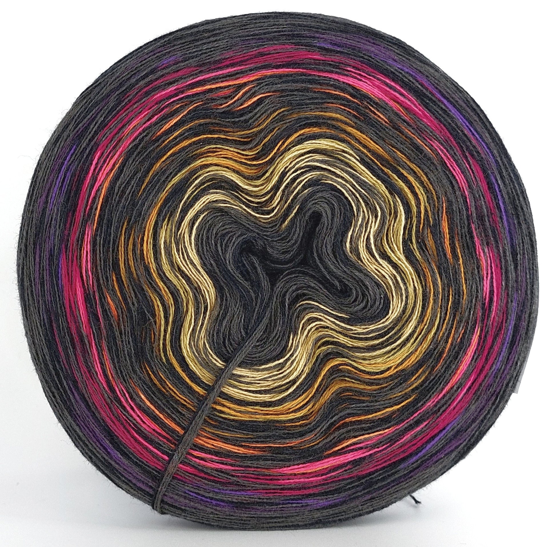 Bei der Tuchwicklung müsst ihr bei mir von innen beginnen. Hier wird jeder Farbabschnitt immer Länger, sodass die "Balken" im Tuch ungefähr gleich dick bleiben. Bei einer Normalen Wicklung sind alle Farbabschnitte gleichlang.